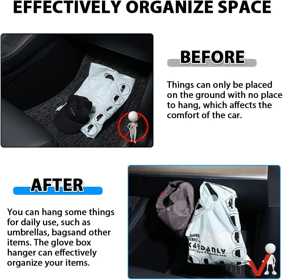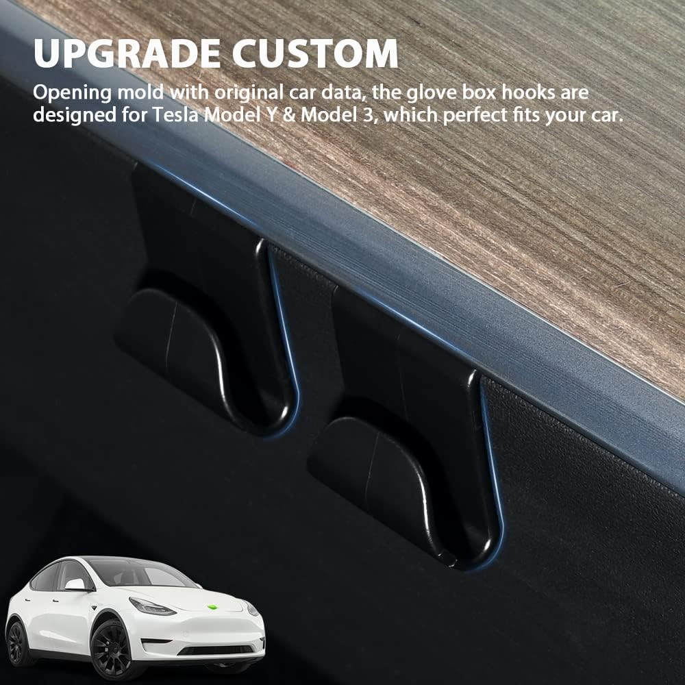 【مجموعة ملحقات داخلية مكونة من 3 قطع】: تم تصميم خطاف صندوق القفازات المكون من قطعتين لموديل 2020 - 2023 Tesla Model Y و2017-2023 موديل 3. وخطاف صندوق السيارة قطعة واحدة تم قصه خصيصًا لموديل 2020 -2023 Tesla Model Y. (ليس للطراز 3) ).100% مناسبة تمامًا. يمكن لخطافات حقيبة صندوق القفازات الاستفادة الكاملة من مساحة سيارتك. (ملاحظة: يرجى التحقق من طراز السيارة قبل الطلب).