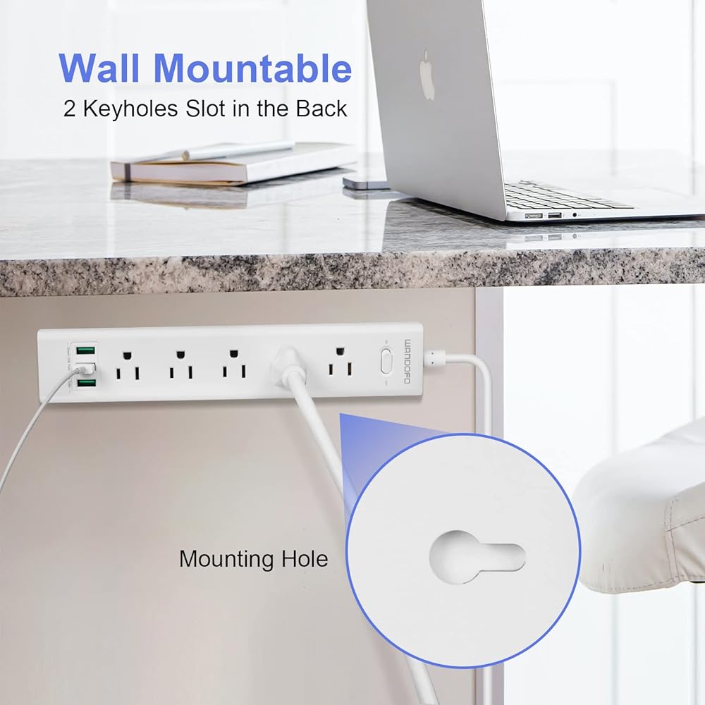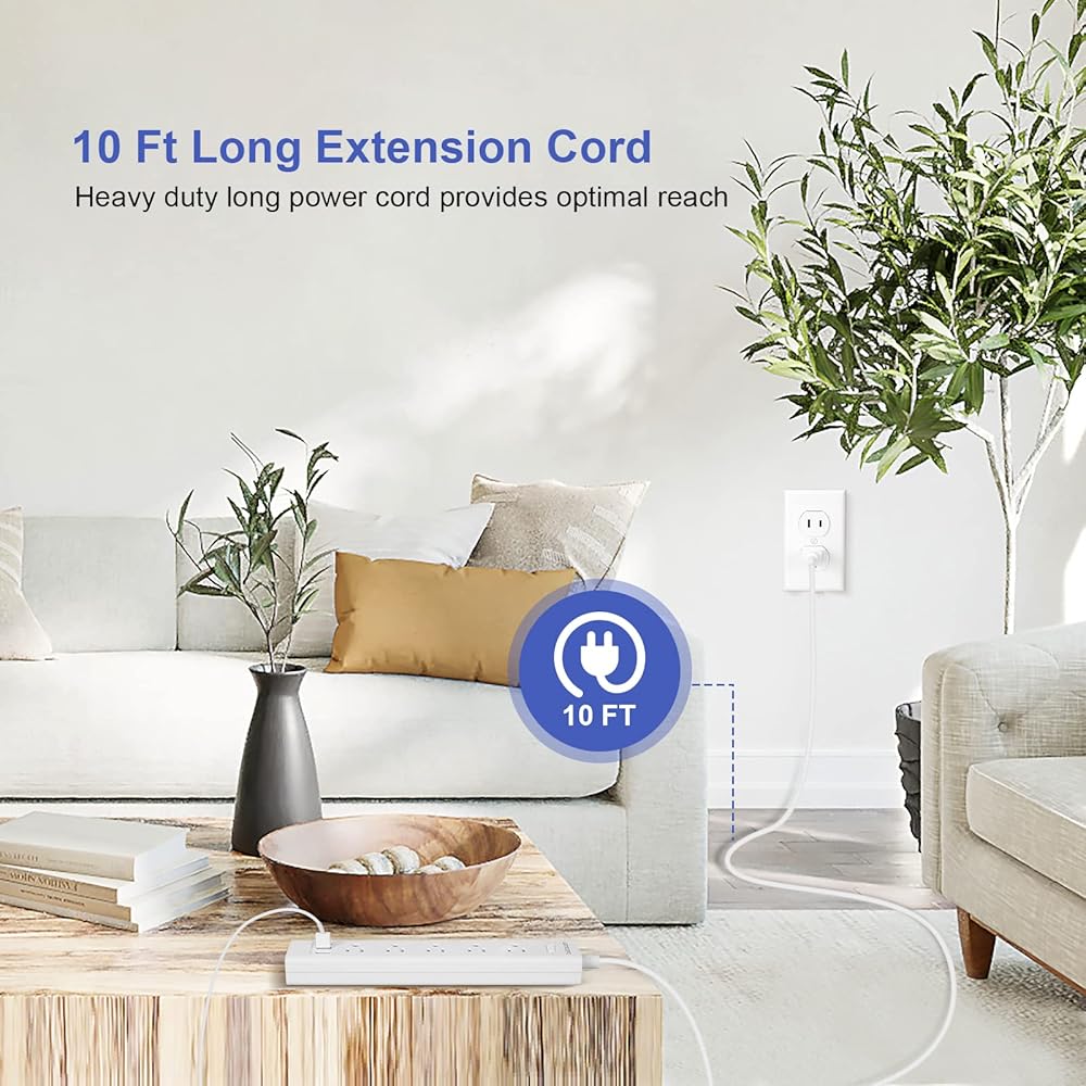 【 Fast Charging Speed USB Ports 】 Up to 2.4A per port, 3.1A shared; 3 USB ports with intelligent charging technology automatically detect your device's optimal power output and match it; USB surge protector power strip helps you to safely charge your device at its optimum speed