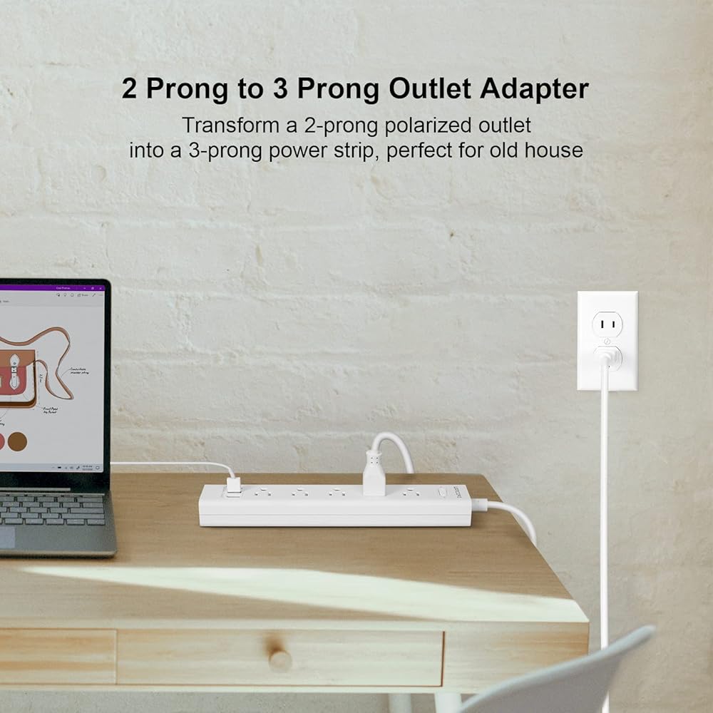 【 Convert 2 Prong Wall Outlet to 3 Prong 】 Two prong power strip surge protector with 10ft extra long extension cord converts the two prong ungrounded wall outlet to three prong outlets; Creates polarized grounded outlet plugs without an electrician, Special design for your older house with only old two prong wall sockets