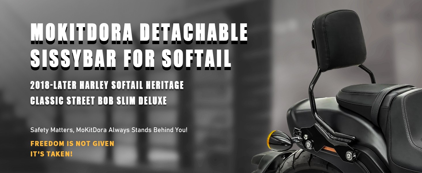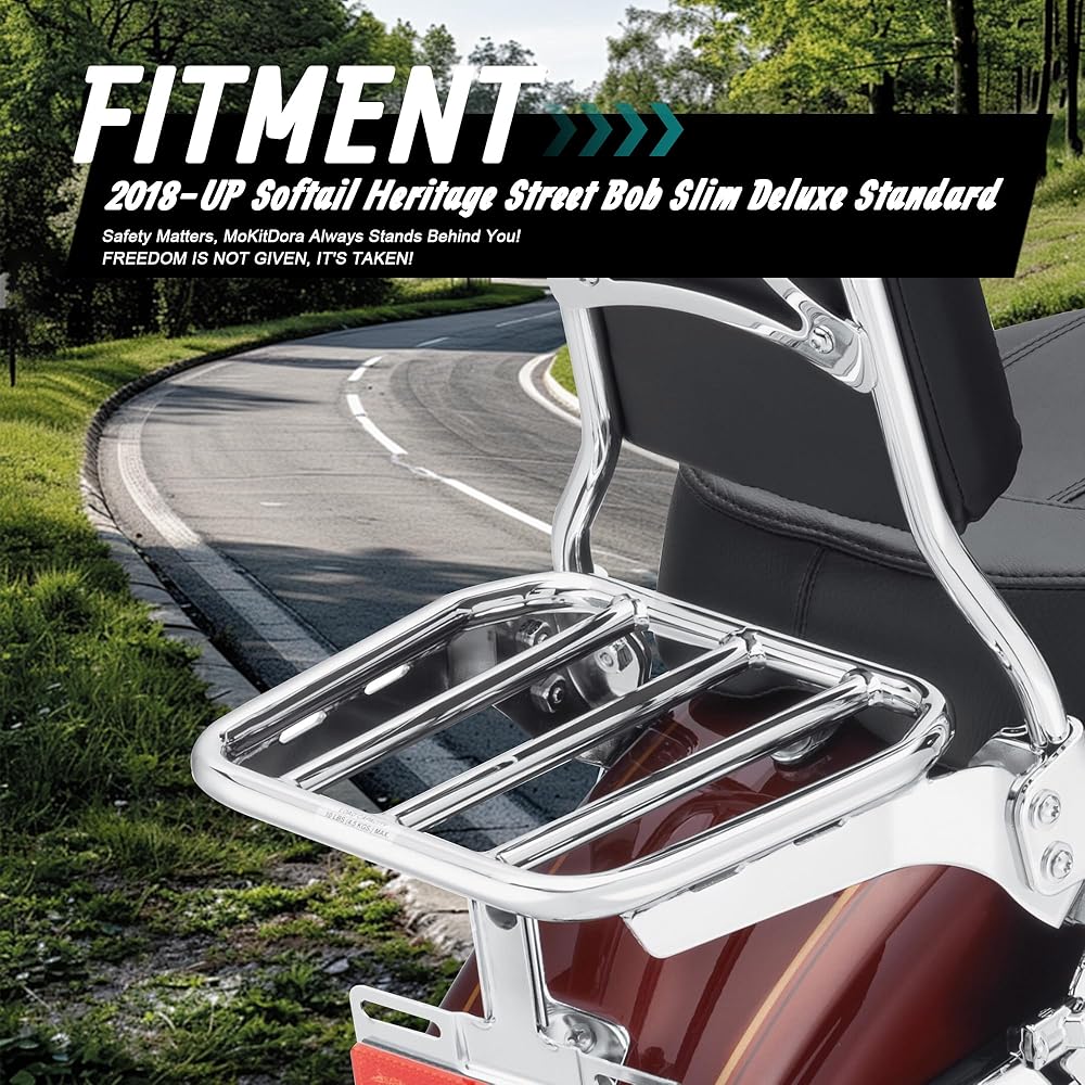 MoKitDora Detachable Backrest Sissy Bar & Luggage Rack for Softail 2018-later Deluxe FLDE, Heritage FLHC FLHCS, Slim FLSL, Street Bob FXBB and Standard FXST, Chrome