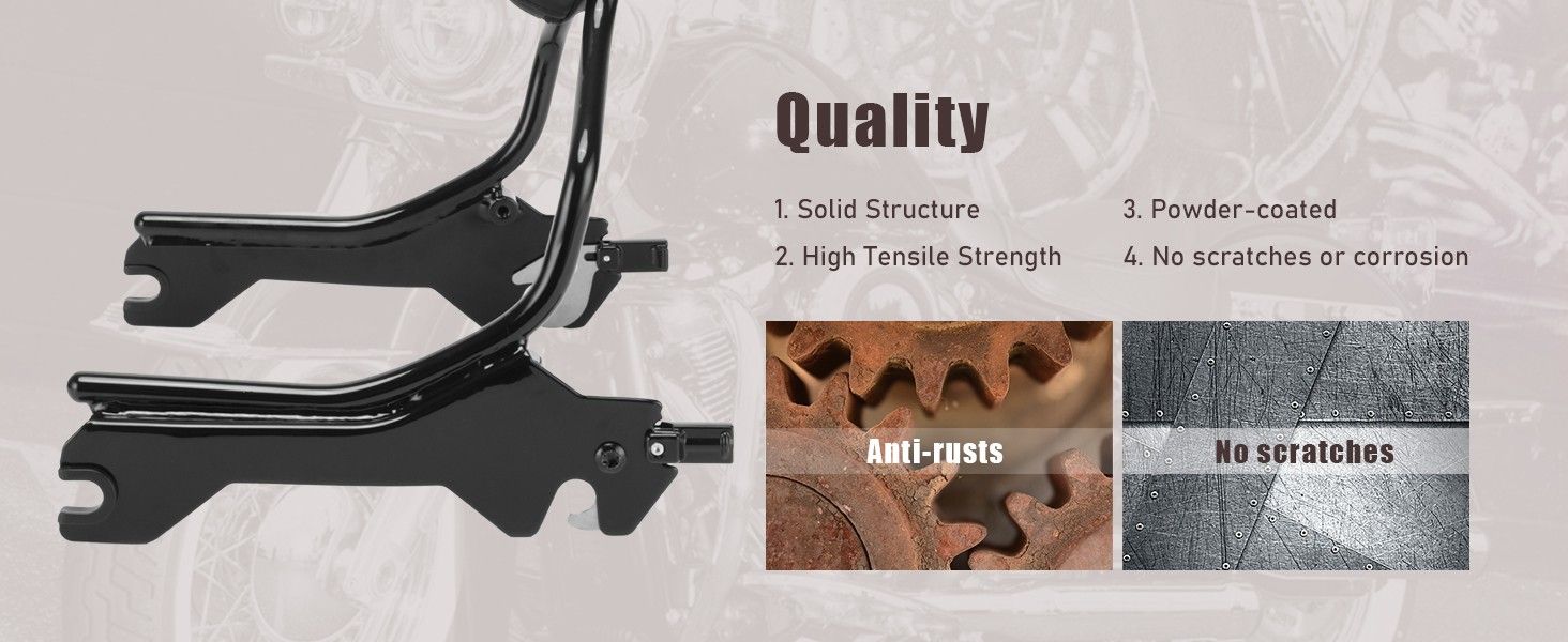 Easy to Install - This sissy bar backrest & luggage rack could be easily installed. Unless already in place, install the docking hardware kit to the vehicle. The detachable design also makes it easy to remove as your touring needs change