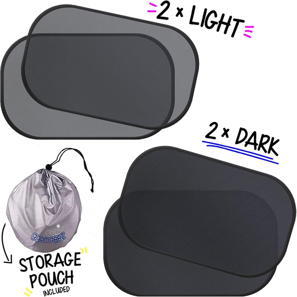 مظلة شمسية لنافذة السيارة من ggomaART - مظلة حماية من الشمس عالمية لأي نوافذ للرجال والنساء والرضع والأطفال تمنع الضرر الناتج عن أشعة الشمس المباشرة والحرارة - 2 حزمة جديدة داكنة و2 خفيفة