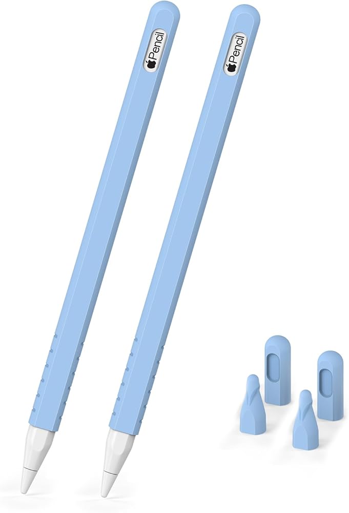 2PCS Protective Silicone Case for Apple Pencil, Sleeve Cover Accessories for iPad Pencil 2nd Gen with 4 Nibs Cover, Blue & Blue