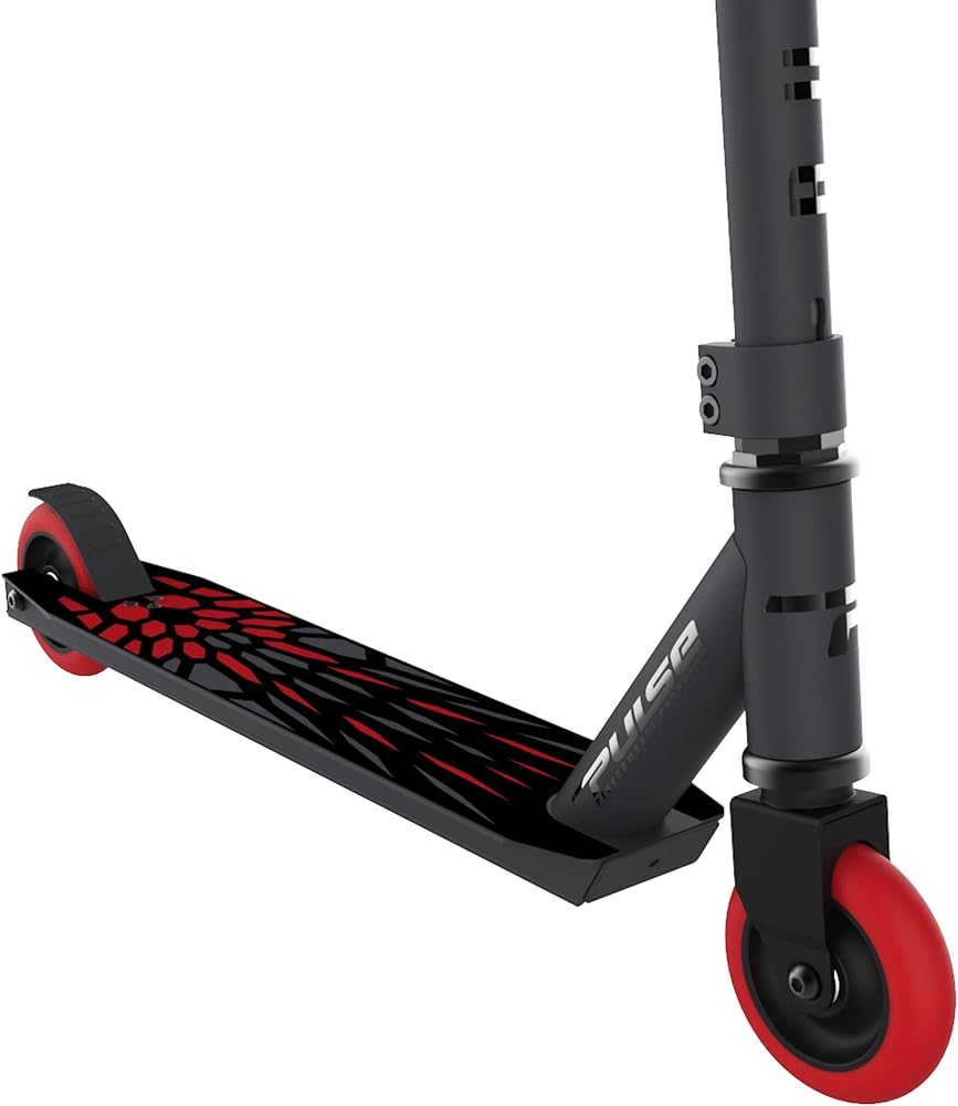 Made for the impact of play, the Burner Pro freestyle scooter is perfect for beginner to intermediate riders! The reinforced steel handlebar, heat-treated aluminum frame, and hi-impact solid-core urethane wheels are durable and long-lasting. Your scooter comes with oversized handlebars with BMX style grips for great control, pro scooter bearings for a smooth ride and built in rear foot brake for safe and easy stopping power.Pulse Performance Products has been dedicated to scooter innovation since 2007. Beginning with the invention of the Kick ‘N Go performance scooter, our creative minds have continued to push the envelope and develop unique and exciting products such as the Slither Drift Scooter and a complete line of electric scooters for all age ranges. Each model offers a mix of style and technical development to ensure a safe, fun ride. All Pulse Performance scooters are eligible for complete customer service support and available replacement parts direct from the manufacturer. [PARAGRAPH RETURN] Pulse Performance Products takes pride in designing, testing and delivering the most epic scooters on the planet, because that's what we do best.
