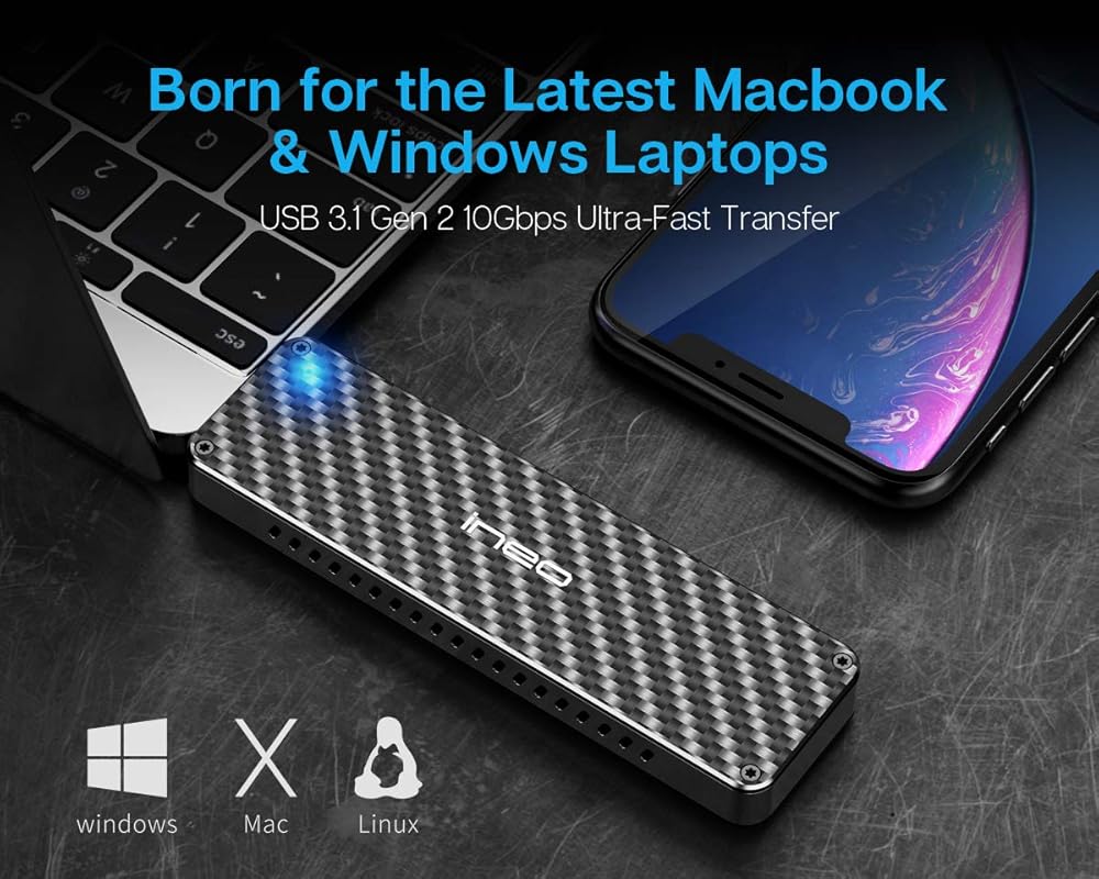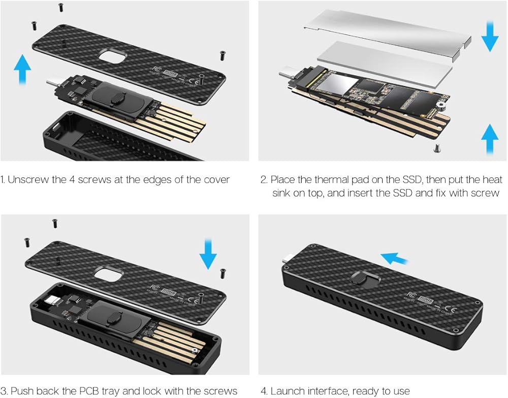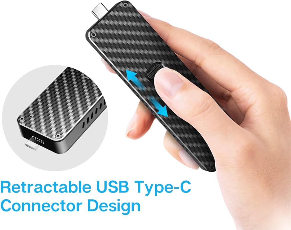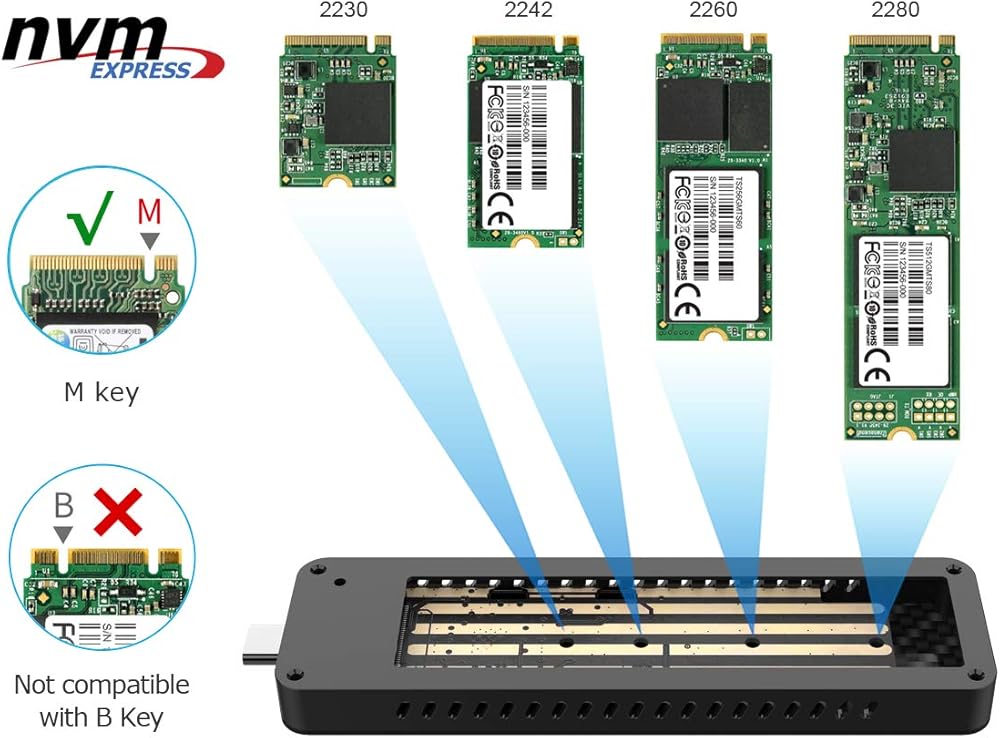 Sturdy and one piece carbon fiber case for premium look and efficient heat dissipation Retractable USB Type-C connector for ultimately convenient use, and provides good protection for the connector as well Ultra fast USB 3.2 transfer speed, widely compatible with M.2 NVMe SSD for size of 2280, 2260, 2242, 2230 ★★Only for M2 NVMe / PCle SSD. Not support M2 "SATA / NGFF" SSD B Key.★★ ★★Only for M2 NVMe / PCle SSD. Not support M2 "SATA / NGFF" SSD B Key.★★