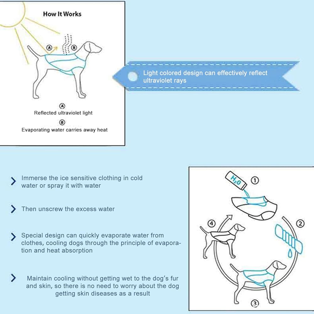 • ✅ تأثير تبريد فوري --- قميص التبريد الخاص بنا مصنوع من ألياف نسيج خاصة للتبريد الفوري، وهي أكثر برودة بمقدار 3-4 درجات من القماش العادي. خفيف الوزن وناعم وجيد التهوية. حافظ على شعور حيوانك الأليف بالانتعاش في الصيف الحار!