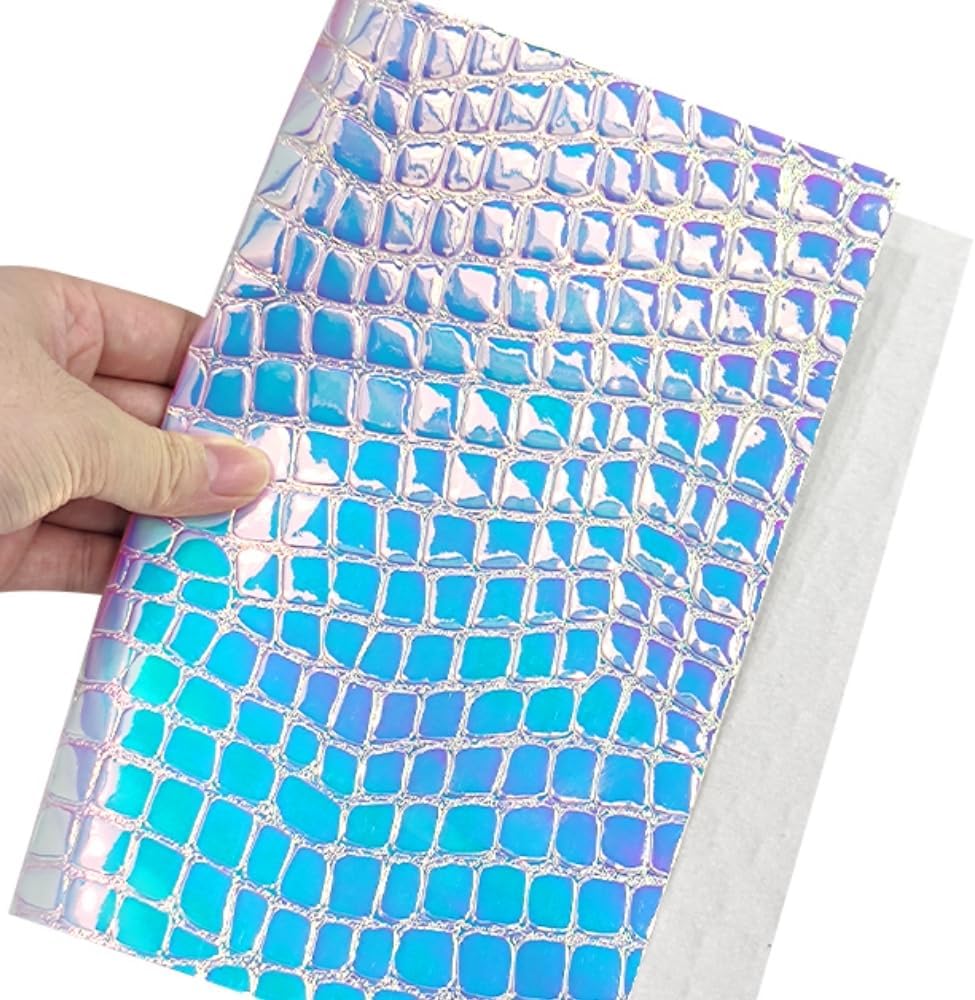 1 Roll 12"X53"(30cmX135cm)Holographic Iridescence Embossed Stone PU Leather Sheets