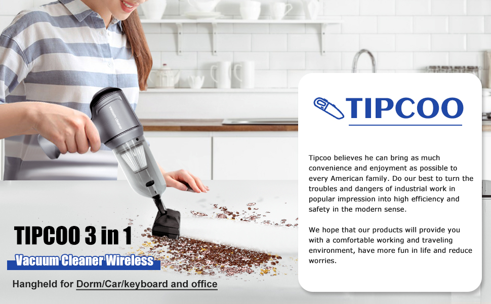 Portable Desing:Hand-held cordless vacuum weighs only 0.77 lb.Easy to hold and small size does.In the car or small space, can also be flexibly used and placed.In addition to the filters that come with the vacuum cleaner itself,vacuum cleaner kit also include one replaceable filters.Strong wet and dry vacuum cleaners not only suck up pet hair,small particles or dirt,but also can easily handle little liquid. Filter is washable and reusable. No more worries about diffused annoying mess in car/home.