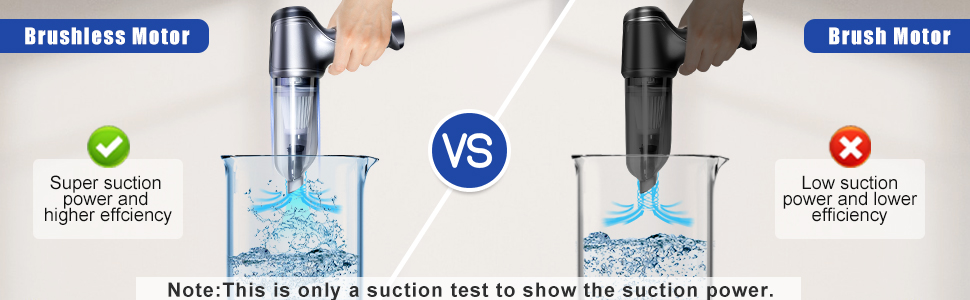 Two-mode Strong Suction:Handheld vacuum cleaner equipped with brush-less motor.Lightweight and avant-garde modeling design.it's adopts a 85W powerful aluminum fan motor the design of counter rotating double leaf structure and taper sealing technology greatly increases the suction.Car vacuum suction with two suction modes: Standard mode:8000pa & Max mode:15000pa,can easily clean dust,debris,pet hair.Cord-free design can move freely when cleaning hard to reach corners without cablescleaned.