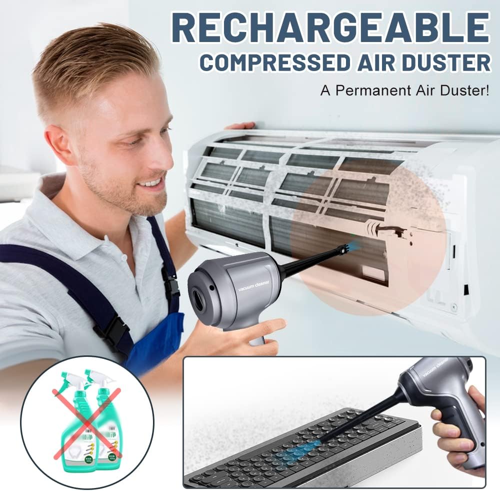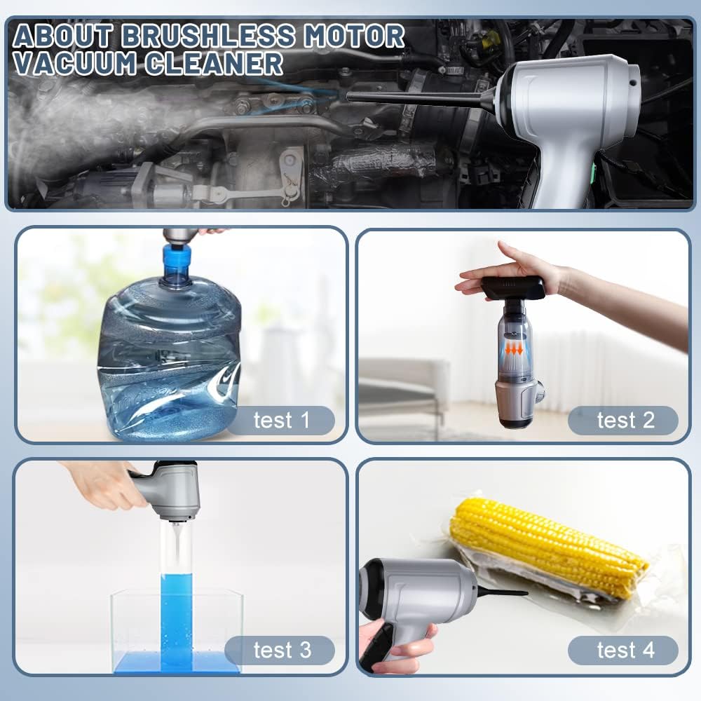 3-In-1 Car Vacuum: Not just a vacuum cleaner, but also an air duster.High speed of up to 35500r/min mini vacuum cleaner with Brushless motorengine is equipped with a variety of accessories that can meet the blowing,vacuuming and pumping a variety of scenarios for use.3 in 1 perfect design,not only keeping car or home clean with ease,but also cleaning crumbs,dust from PC, keyboard,air conditioner. You can also take it as vacuum sealer to pump air out of storage bags to save your space.
