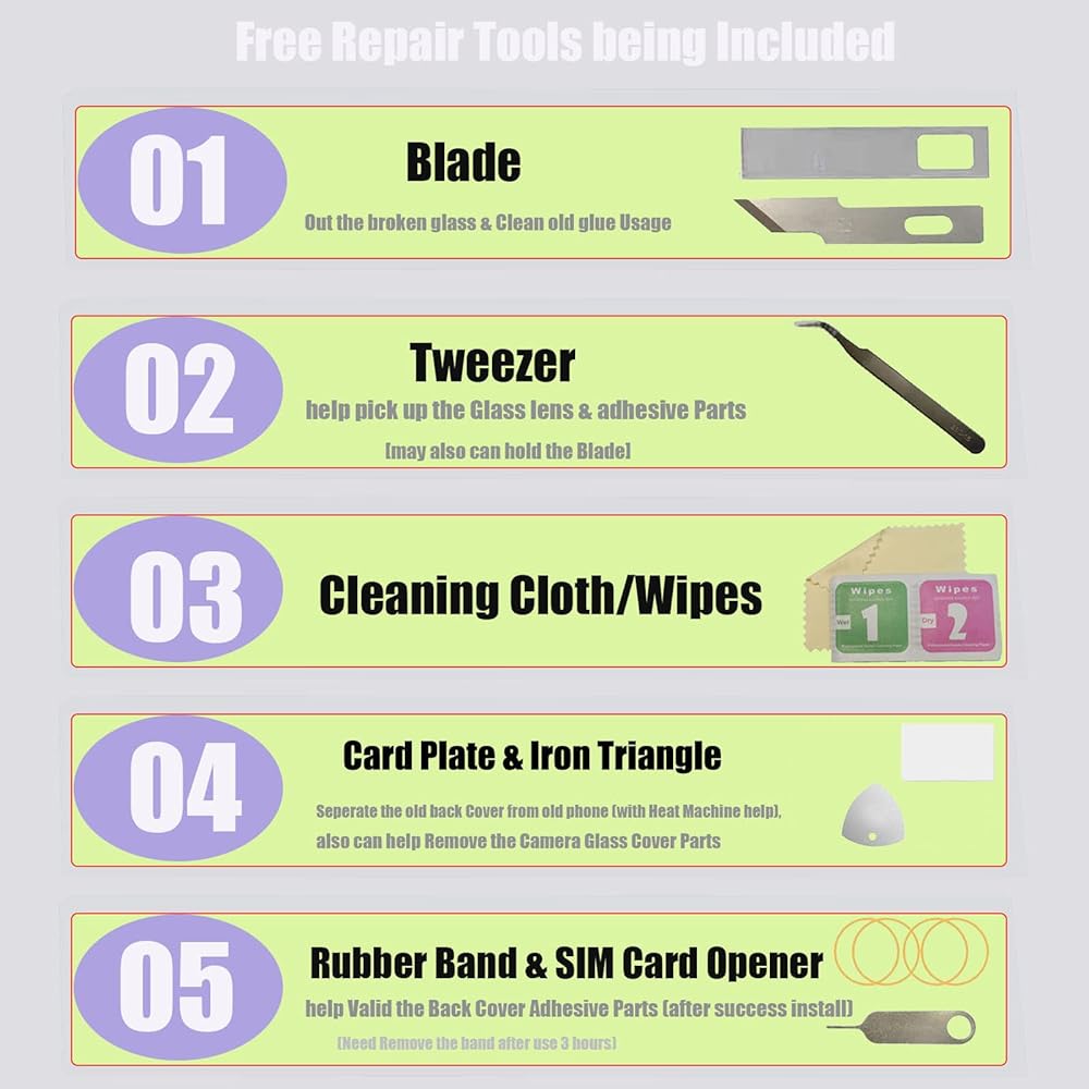 Comes 2pcs Back Camera Glass Replacement Cover with pre-install Adhesive Parts Inside the package (Storage usage will also another Purpose)