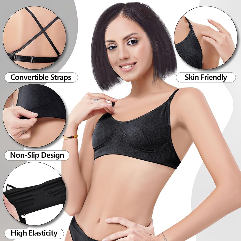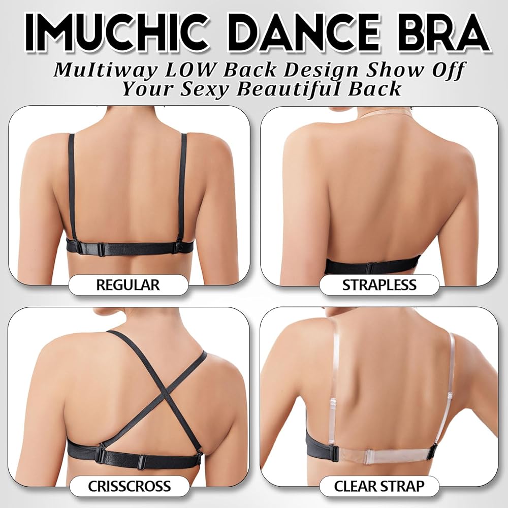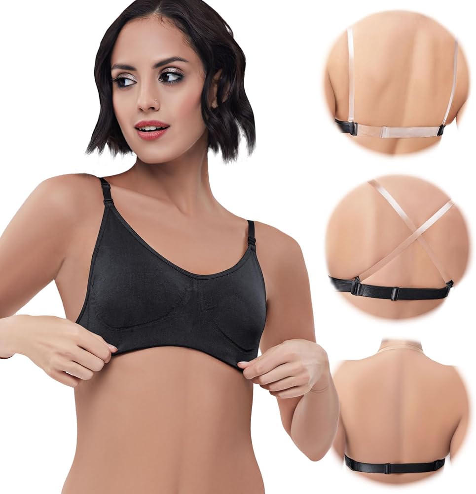 Women's Clear Strap Bra Nude Dance Bra Seamless Invisible Backless Ballet Bras with Adjustable Straps