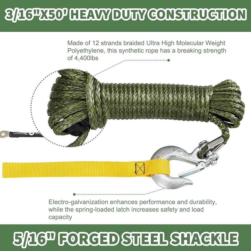 الحجم: تصنيف 4,400 رطل - 3/16 بوصة × 50 بوصة مع تكبل 5/16 بوصة (2.1 رطل)
