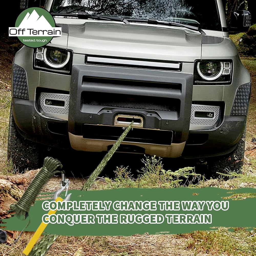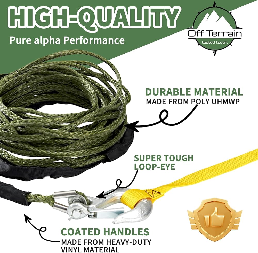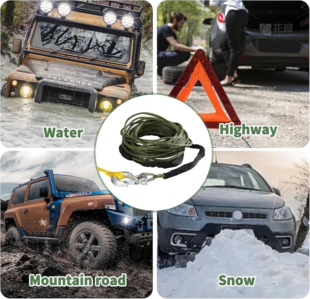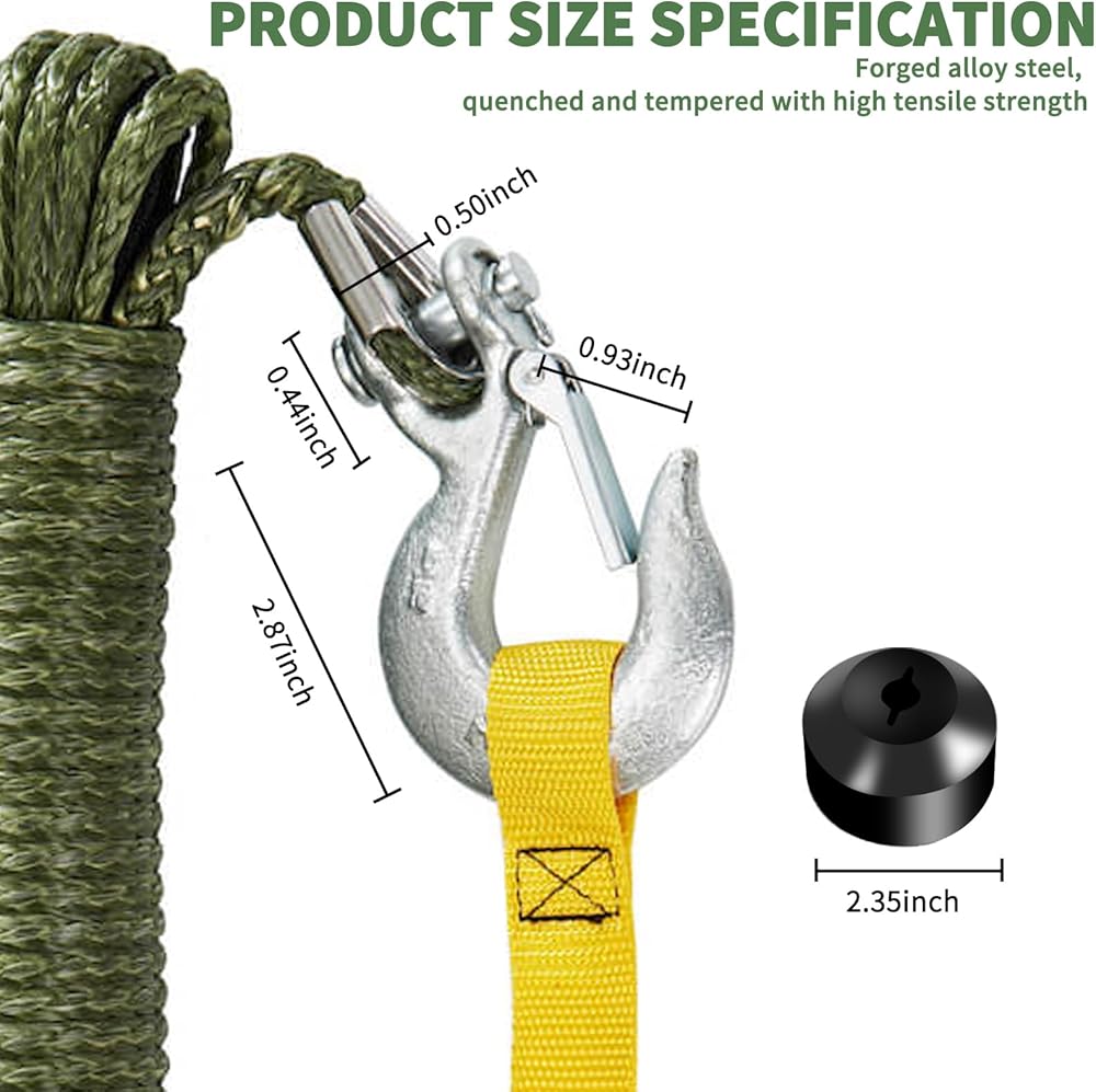 مجموعة كاملة - حبل ونش صناعي، وسلسلة شديدة التحمل، وسدادة مطاطية + يتضمن كل حبل من حبال الرافعة لدينا أيضًا عينًا مقسمة على أحد الطرفين وطرفًا طرفيًا من الطرف الآخر (يمكن إزالة الطرف الطرفي إذا لم يكن مطلوبًا بواسطة الونش)