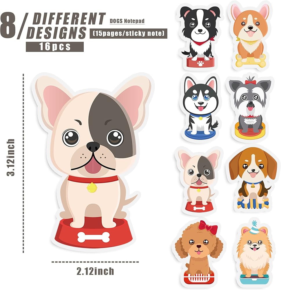 16 وسادة ملاحظات لاصقة للكلاب، لطيفة لحفلات الجرو، وسادات ملاحظات ذاتية اللصق، رسوم متحركة لاصقة، لوحة ملاحظات للكلاب، موضوع آخر، ملاحظات للكلاب، حفلة، مدرسة، مكتب، مستلزمات دفتر المنزل (كلب)