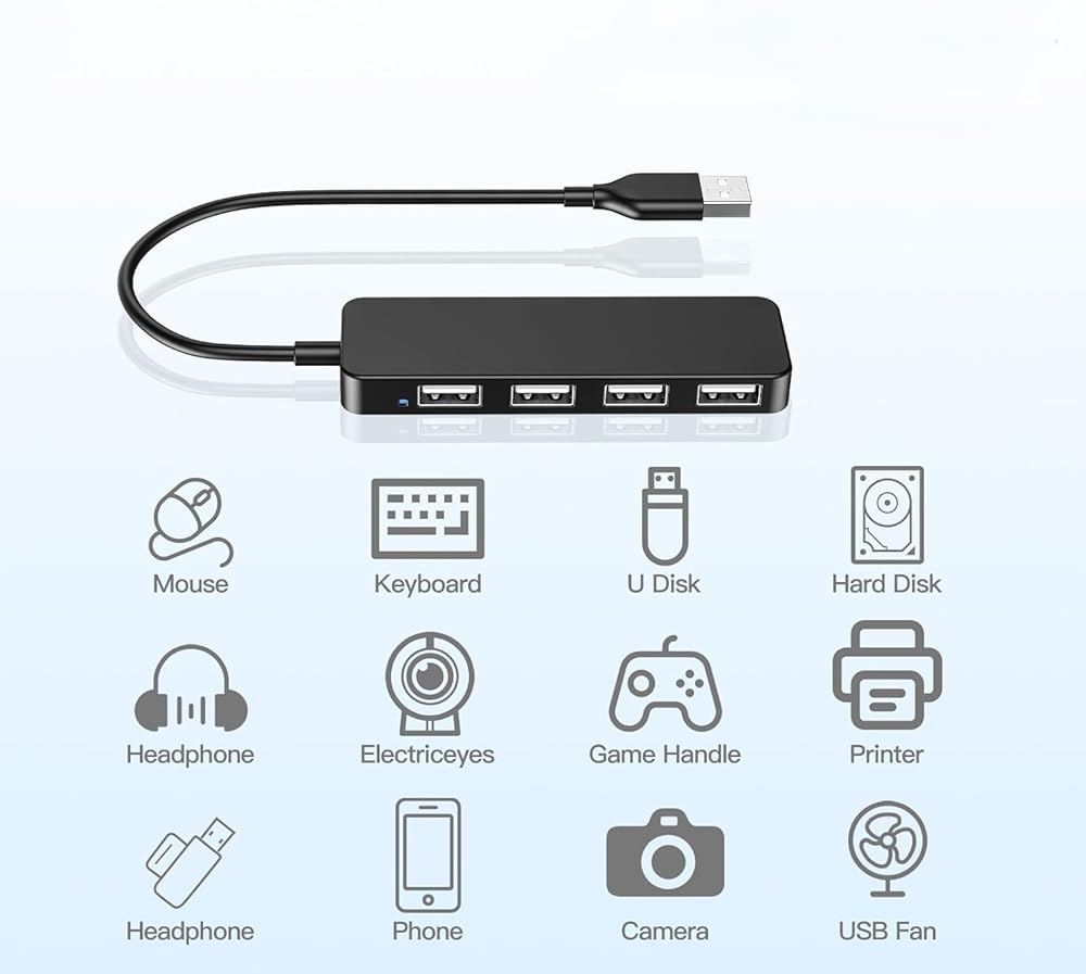 ✅USB EXTENDER - Slim 4 port USB hub for connecting up to 4 USB devices, e.g. Memory sticks, hard disks, mice, keyboards, printers, digital cameras, camcorders, speakers, scanners, card readers, etc. No need to install, plug and play.
