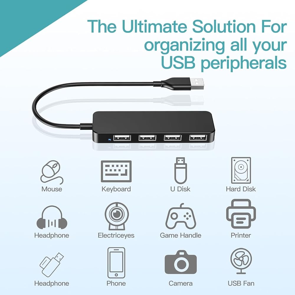 USB Hub, 4 Port USB Adapter Ultra-Slim USB Splitter, Multi USB Port Expander USB Extender Lead Adapter for PC, Laptop, Desktop, Notebook, MacBook, Netbook, MAC, Wii