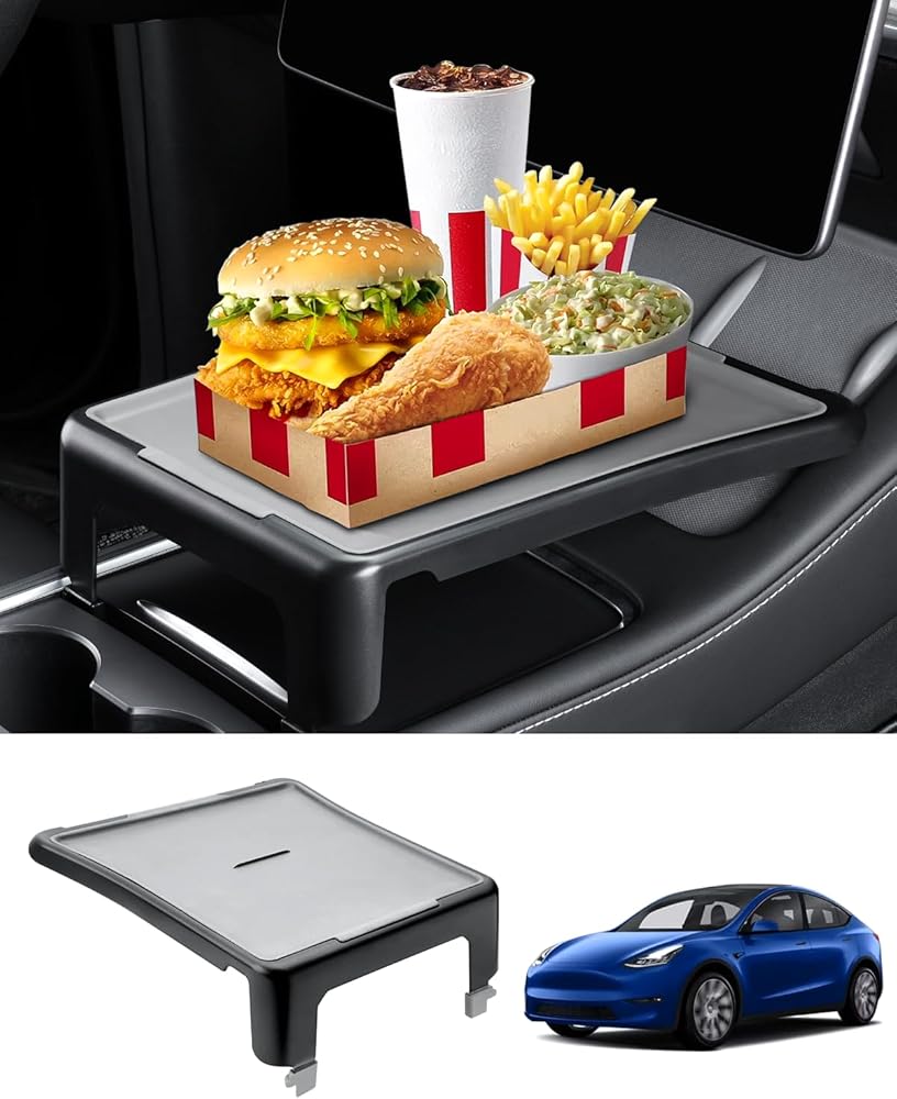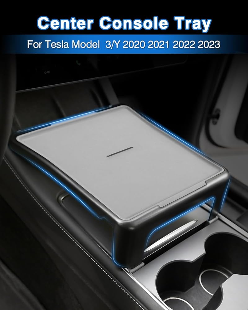صينية وحدة التحكم المركزية للسيارة لطراز تسلا 3 / موديل Y 2020-2024 طاولة تناول الطعام متعددة الوظائف صينية طعام ومسند للذراع منظم مقاوم للغبار موديل 3 موديل Y ملحقات داخلية باللون الرمادي