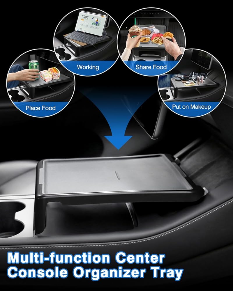 • 【ملاءمة مخصصة للطراز 3/Y】طاولة تناول الطعام من Shademax مناسبة خصيصًا لموديل 2021 2022 2023 2024 Tesla Model 3/Y. صينية تنظيم وحدة التحكم المركزية متعددة الوظائف تناسب بشكل جيد وحدة التحكم المركزية. يستخدم كل من السائق الرئيسي ومساعد الطيار الدرج وفقًا لاحتياجاتهم، مما يوفر لك الراحة.