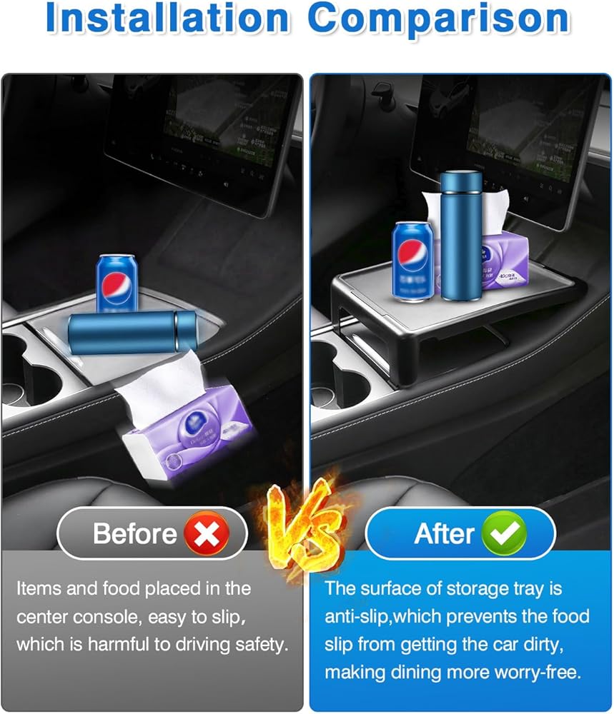 • 【حمل ضرورياتك】لا تستطيع صينية تنظيم وحدة التحكم المركزية متعددة الوظائف طراز Tesla Model 3 وضع الطعام والهامبرغر والمشروبات لتجنب الفوضى التي تؤثر على سلامة القيادة فحسب، بل يمكنها أيضًا وضع الهواتف المحمولة والمفاتيح ومستحضرات التجميل لسهولة الاستخدام.