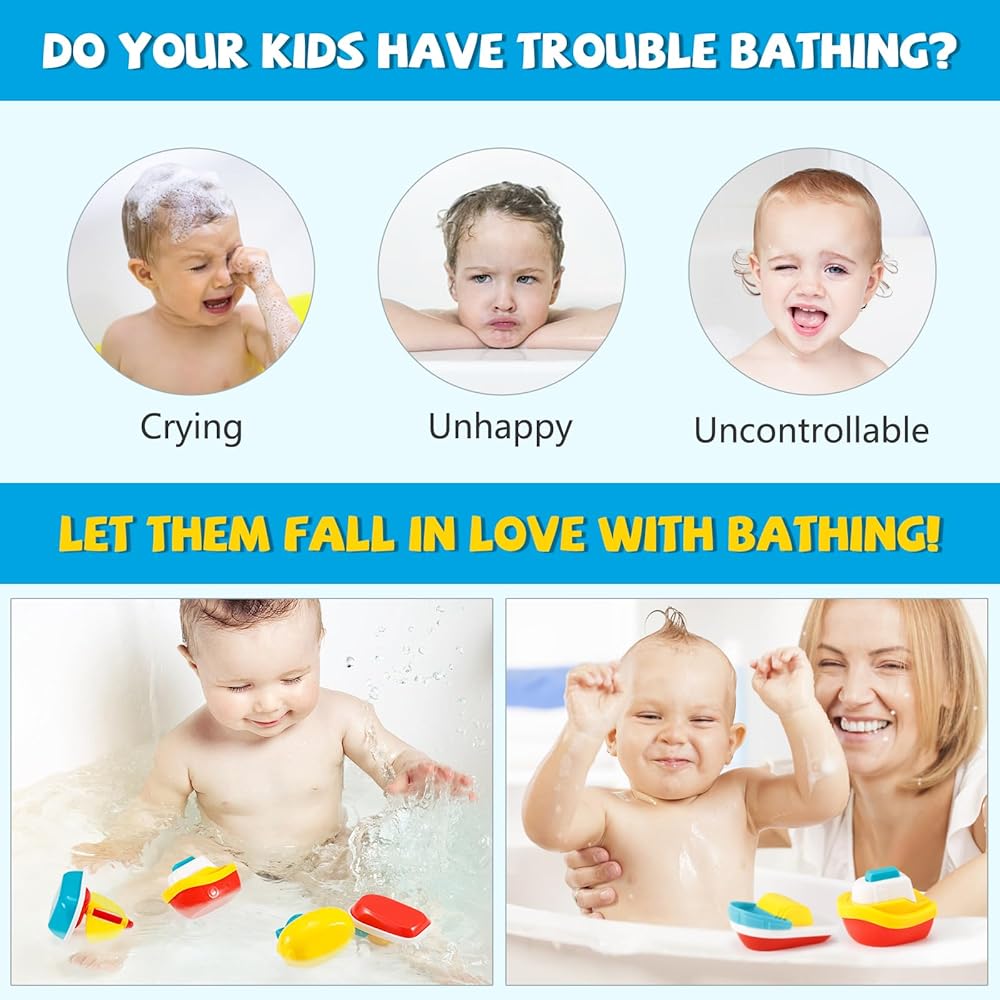 لعبة قارب ألعاب حمام للأطفال الصغار 1-3، مجموعة من 4، قوارب لعبة عائمة لحوض الاستحمام، ألعاب حمام سباحة للأطفال للعب في الماء في الهواء الطلق، ألعاب شاطئ حمام سباحة خالية من العفن، هدية عيد ميلاد مثالية لعيد الميلاد