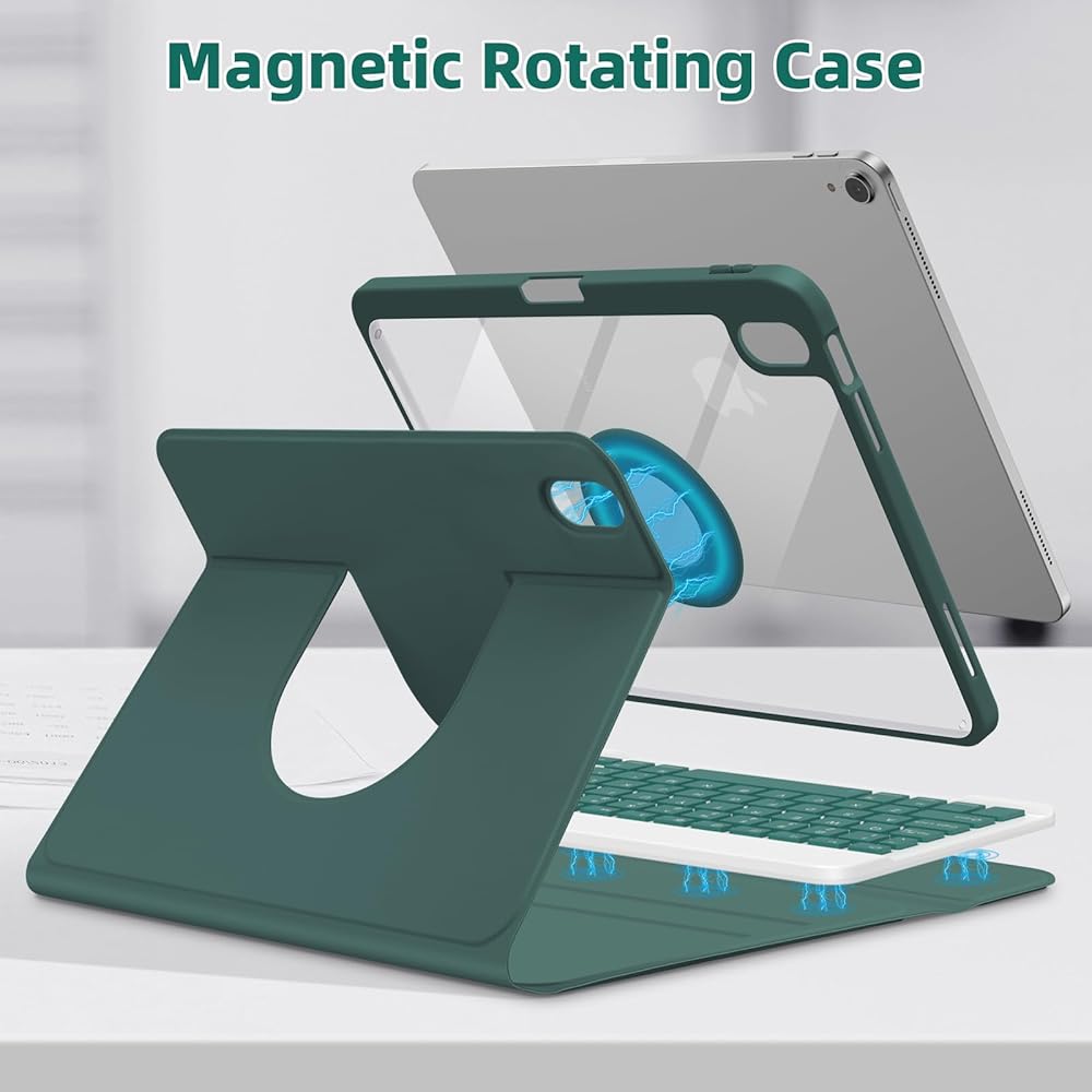 حافظة GOOJODOQ الجيل العاشر مع لوحة مفاتيح، iPad 10th Gen 10.9 بوصة 2022 حافظة دوارة ولوحة مفاتيح بلوتوث قابلة للفصل مع حامل أقلام لإصدار 10.9 بوصة 2022 A2696 A2757 A2777- أخضر داكن