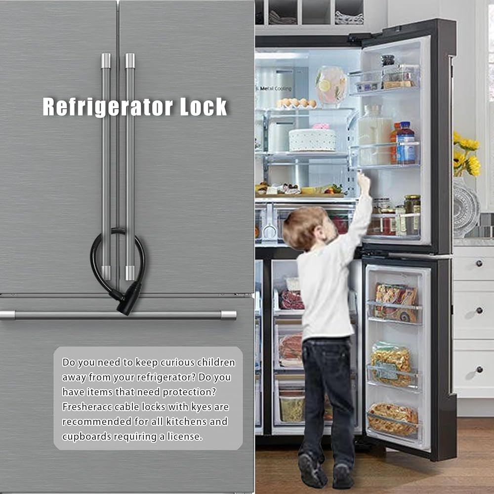 جودة عالية: قفل الثلاجة مصنوع من كابل من الفولاذ المقاوم للصدأ وأقفال عالية الجودة مع أسطوانات نحاسية، فتح أكثر سلاسة دون تشويش من أسطوانات قفل سبائك الزنك الأخرى، يدوم طويلاً ومتين.