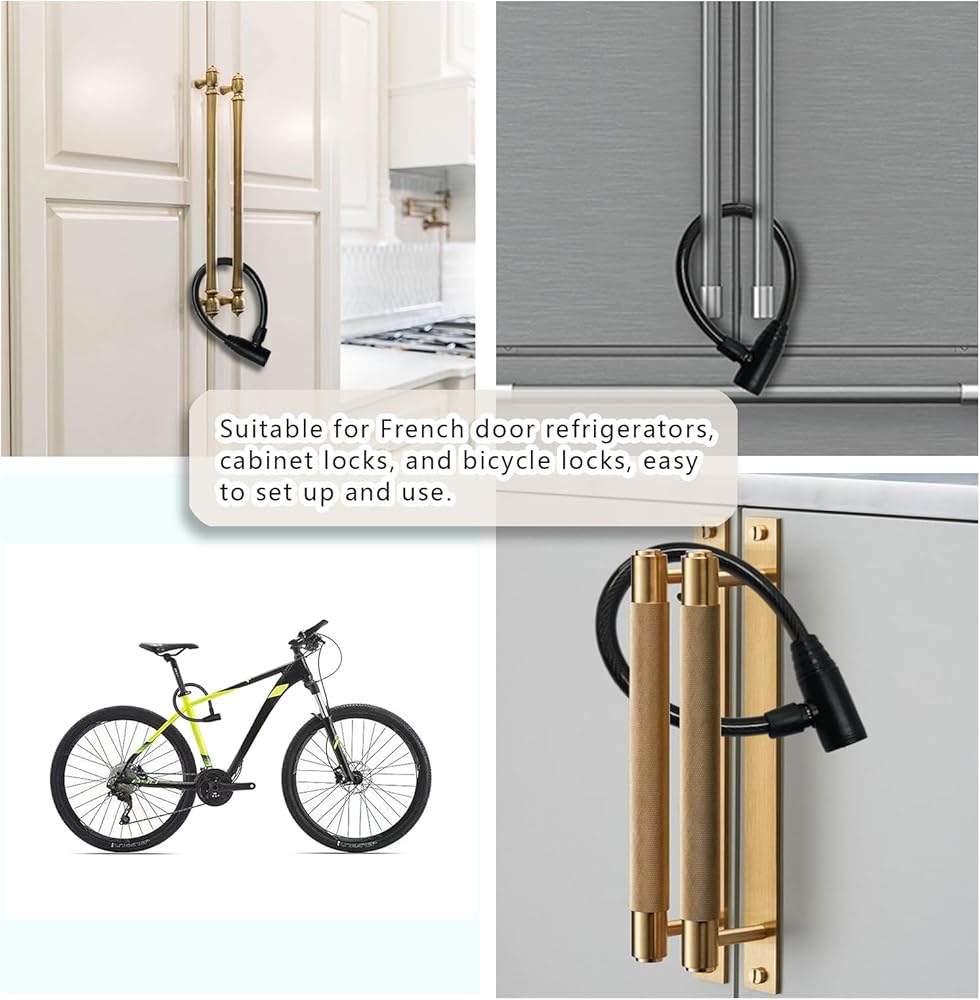 استخدامات متعددة: أقفال الخزانة للبالغين مصممة خصيصًا لأمن الأبواب الفرنسية، ويمكن استخدامها أيضًا للأبواب والدراجات والخزائن ومقابض الأبواب التي يقل قطرها عن 42 سم (16.5 بوصة).