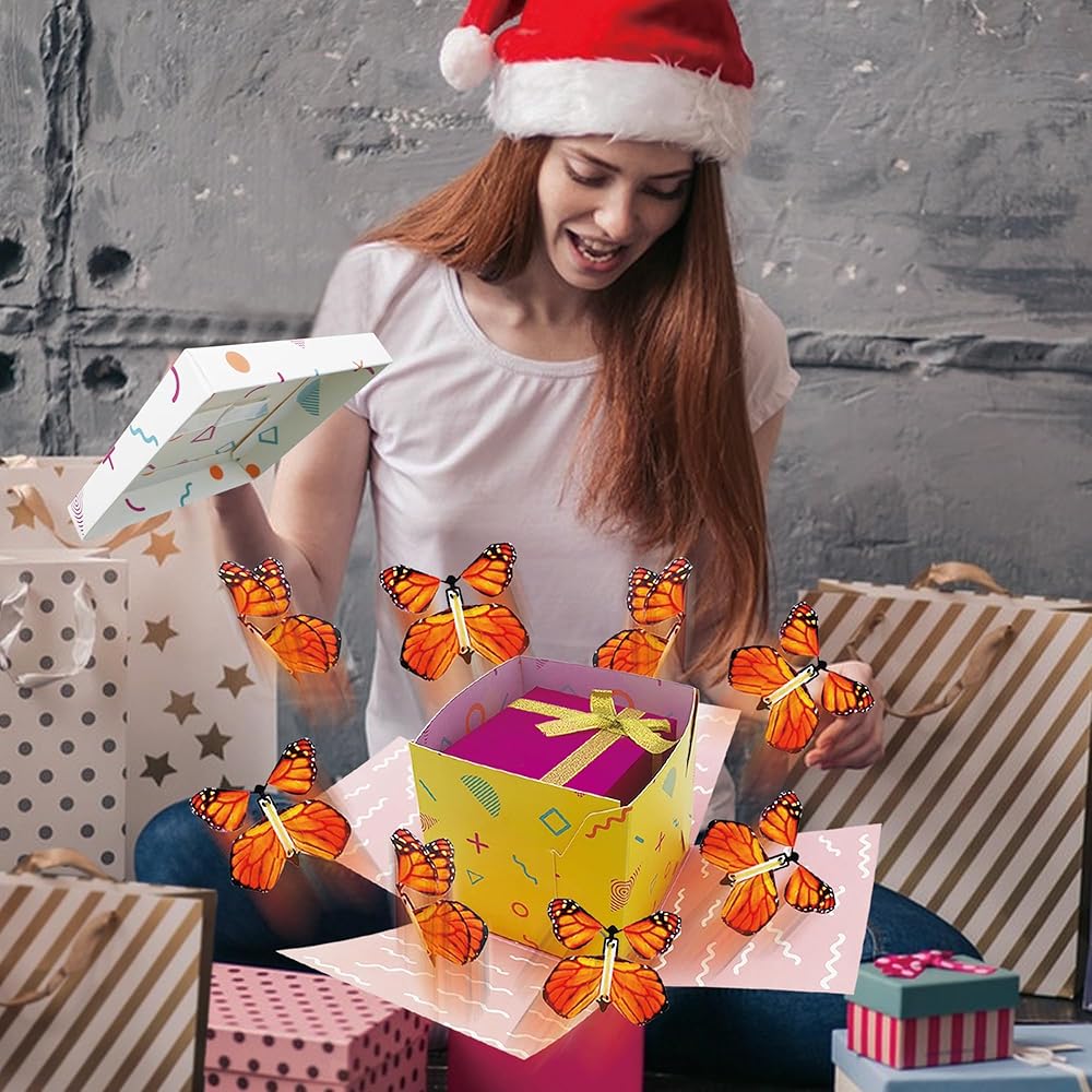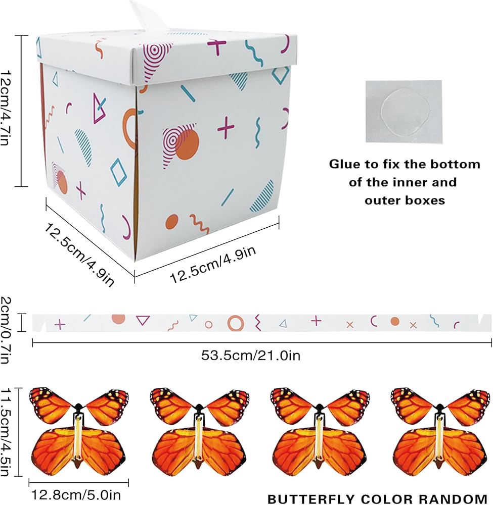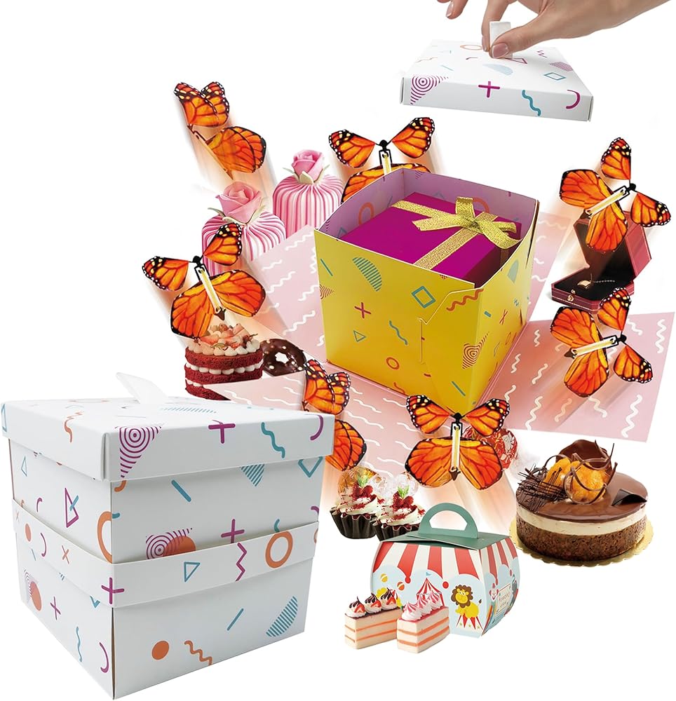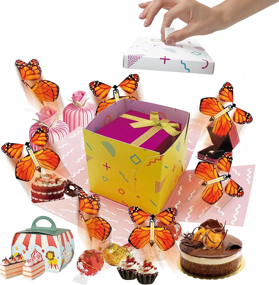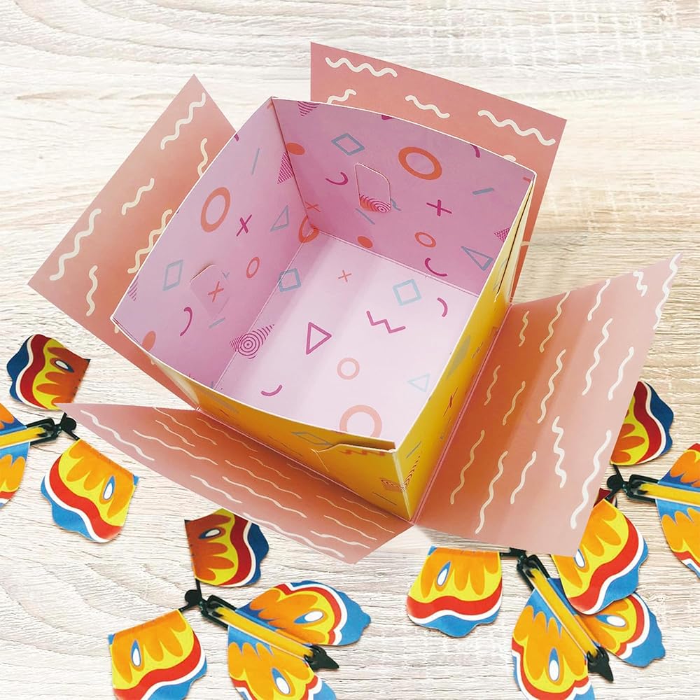 جودة عالية: مصنوع من ورق عالي الجودة، صندوق هدايا الفراشة إكسبلوجن DIY يجسد المتانة والمتانة. يخضع كل صندوق انفجار على شكل فراشة لإجراءات دقيقة لمراقبة الجودة لضمان الحصول على منتج فائق الجودة يضمن تجربة استثنائية.