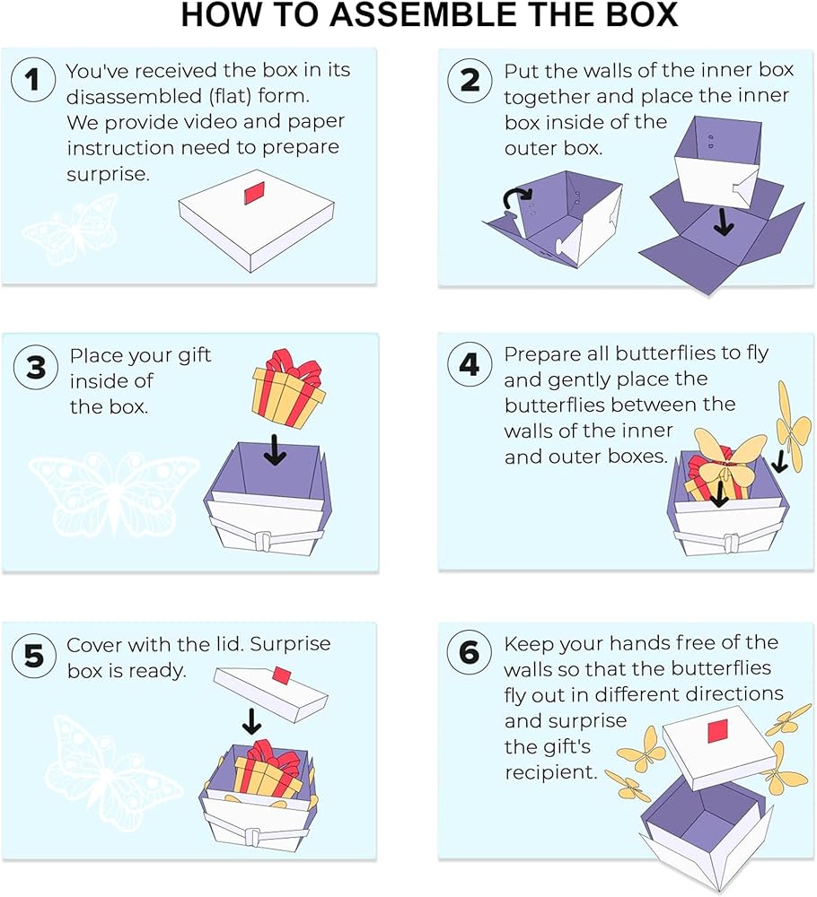 هدية مثالية: مثالي للخطوبة، وحفلات الزفاف، والذكرى السنوية، وأعياد الميلاد، وعيد الحب، وعيد الأم، أو كتعبير صادق عن الحب، يعد صندوق هدايا Butterfly Explosion خيارًا لا تشوبه شائبة، مما يضمن لفتة صادقة ومدهشة لأحبائك.