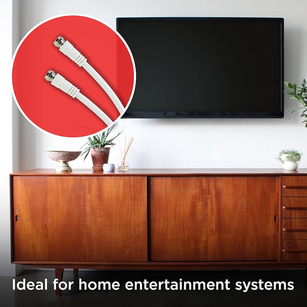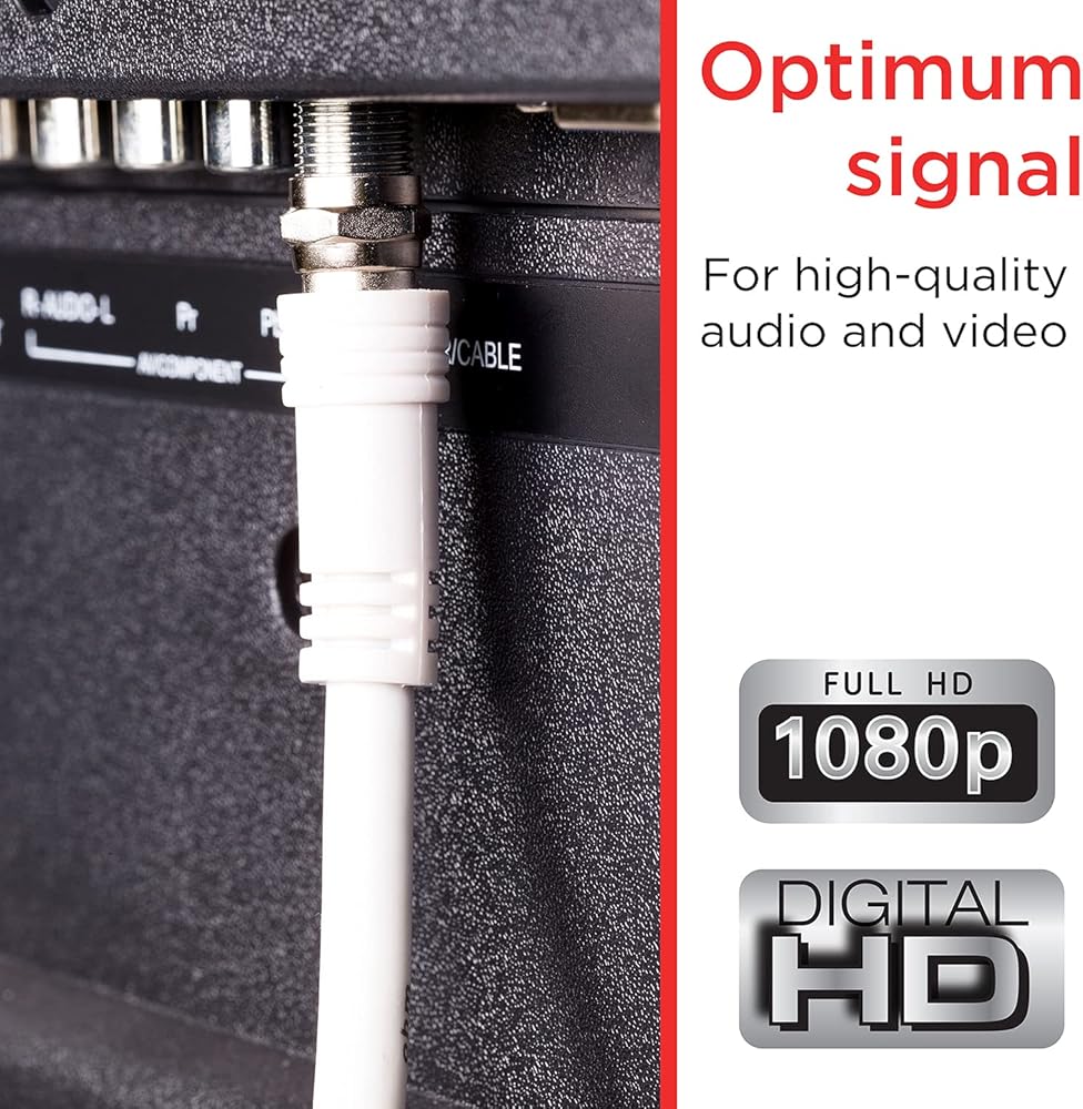 F-TYPE COAX CONNECTION – Easily connect any two components equipped with F-type coax connectors such as a TV, indoor antenna, VCR, DVR, cable or satellite box, modem, router and more.