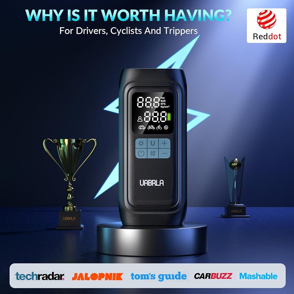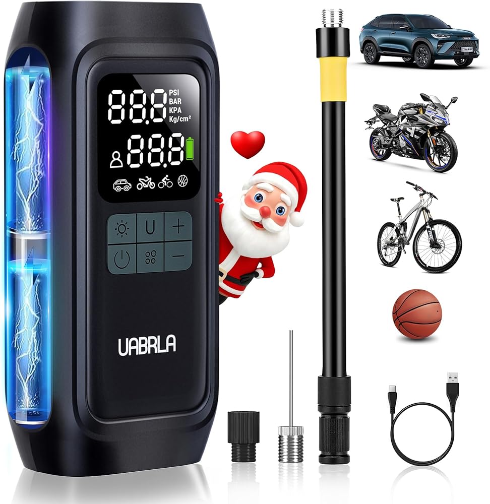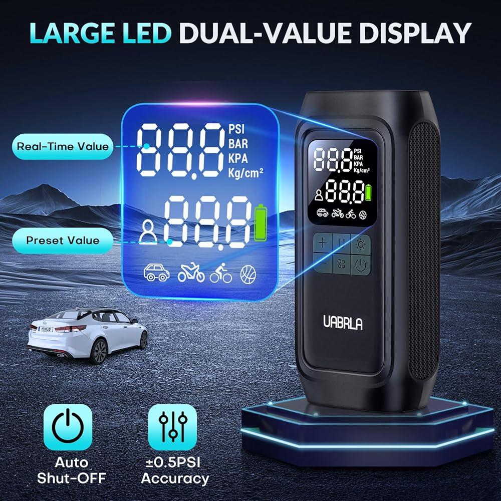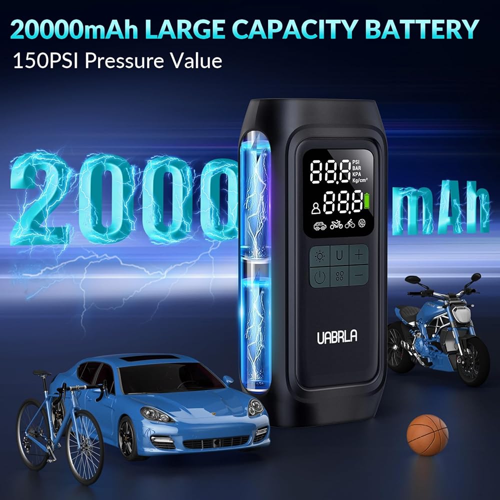 UABRLA Tire Inflator Portable Air Compressor, 20000mAh & 2X Faster Inflation Electric Air Pump for Car Tires, Cordless Auto-Off Bike Tire Pump with Pressure Gauge for Car, Motorcycle, Ball