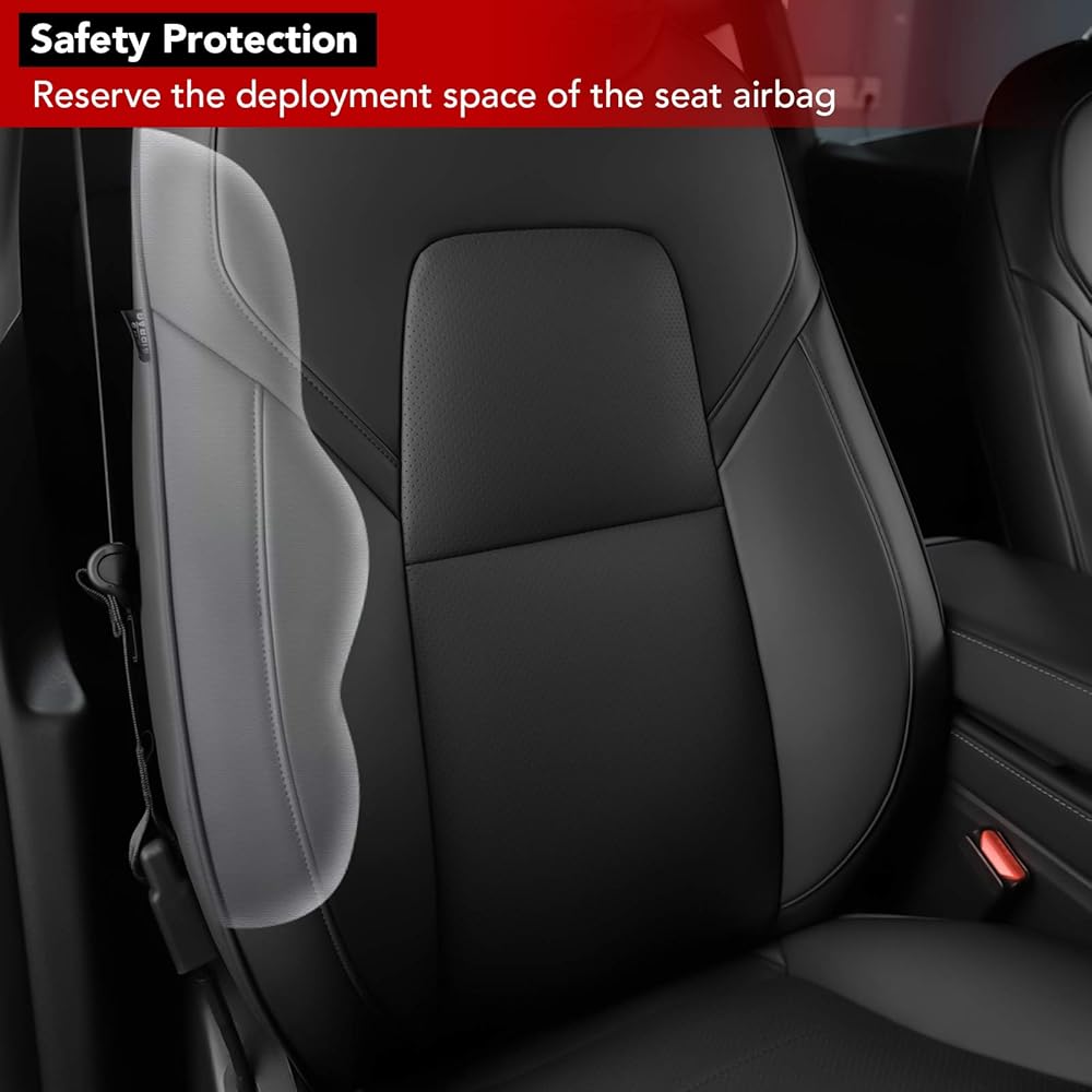 • سهولة التركيب: تم ​​تصميم غطاء المقعد مع وضع السلامة في الاعتبار، وهو يستوعب نشر الوسادة الهوائية للمقعد الأمامي والذي لن يؤثر على استخدام الوسادة الهوائية، مع توفير دليل تركيب مفصل بالفيديو سهل الاتباع، مما يضمن إعدادًا سلسًا.