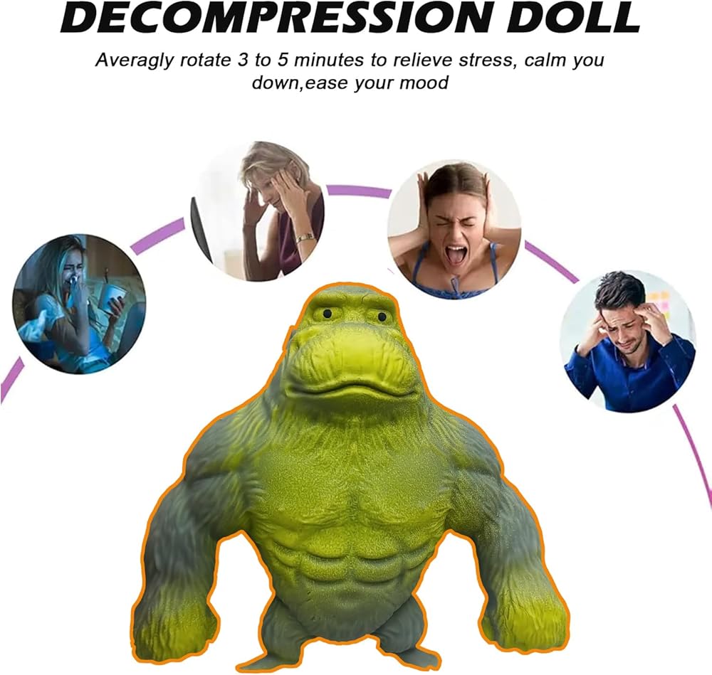 🐒【Stress Relief】This Gorilla stress toy bounces, stretches, kneads, squeezes, promotes calm focus and relaxation, puts you in a happy mood, reduces inner impatience, reduces anxiety and tension, and can also help relieve stress and increase blood circulation in your hands.
