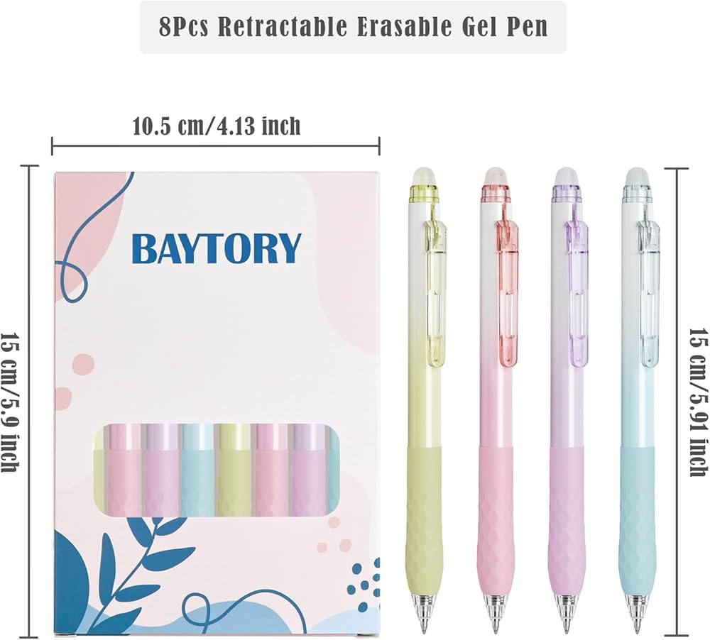 【قابلة للسحب والمحمولة】أقلام حبر هلامية قابلة للسحب وقابلة للمسح من بايتوري تسمح لرأس القلم بالسحب بضغطة لطيفة فقط. يمكن وضع حامل القلم في الجيب أو الكتاب.