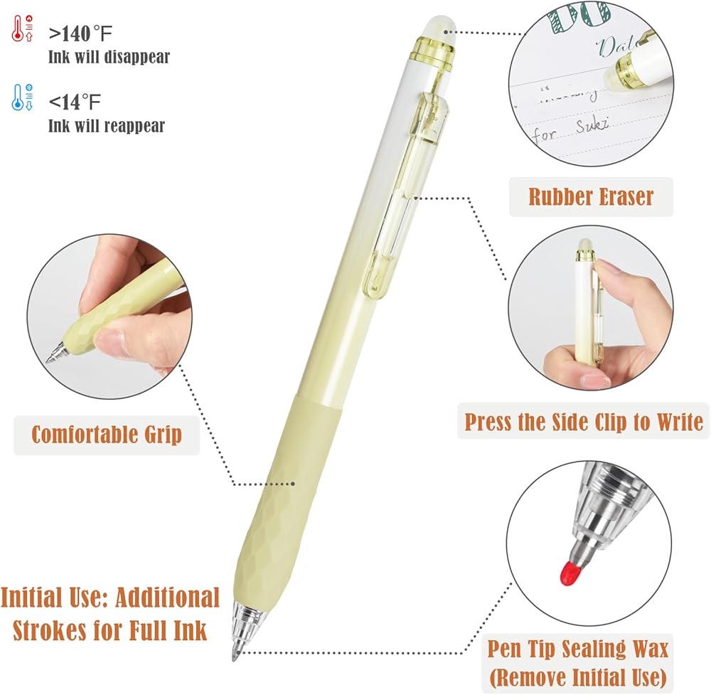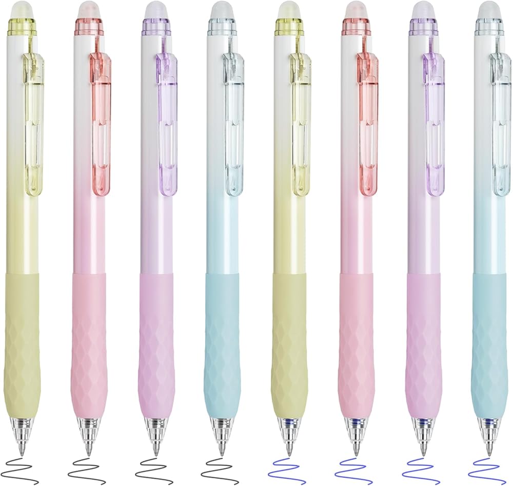 【حبر عالي الجودة】4 أقلام حبر سوداء و4 أقلام حبر زرقاء، التصميم الفريد للحبر الذي يمكن التحكم في درجة حرارته يسمح باختفاء الكتابة اليدوية في بيئات درجة الحرارة العالية (أعلى من 140 درجة فهرنهايت) دون ترك أي أثر.
