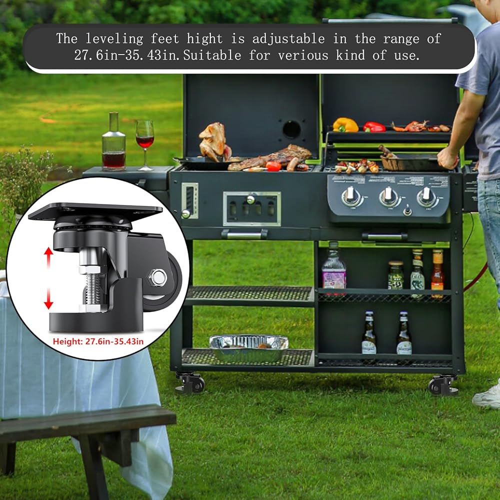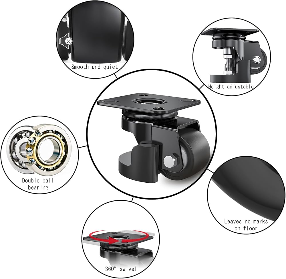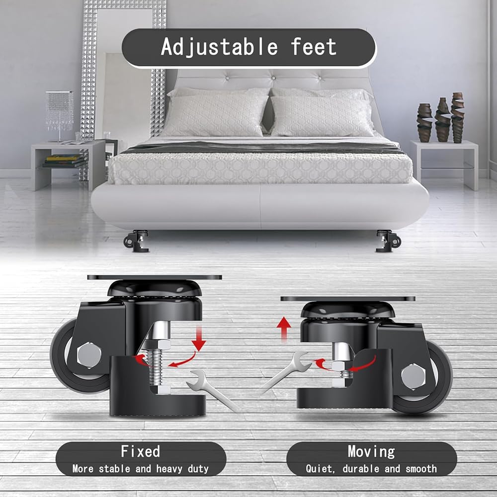 4.MORE STABLE AND DOUBLE HEAVY DUTY. With the leveling foot down to the same height of wheel, the load capacity can be up to 1800 Lbs in total with set of 4 casters. And the leveling foot also serves as furniture leveler for uneven floors, which makes your furniture more stable.