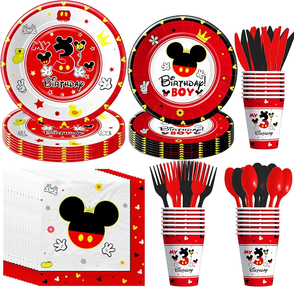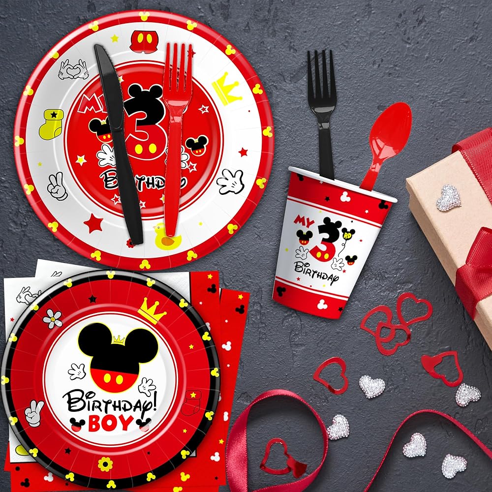 【Boys Third Birthday Supplies】Tailored specifically for a three birthday party, this Mickey party decorations for 3rd birthday adds an extra layer of excitement and charm to the celebration. The mickey themed design, coupled with the age-appropriate aesthetic, makes it an ideal choice for commemorating this special milestone in your child's life