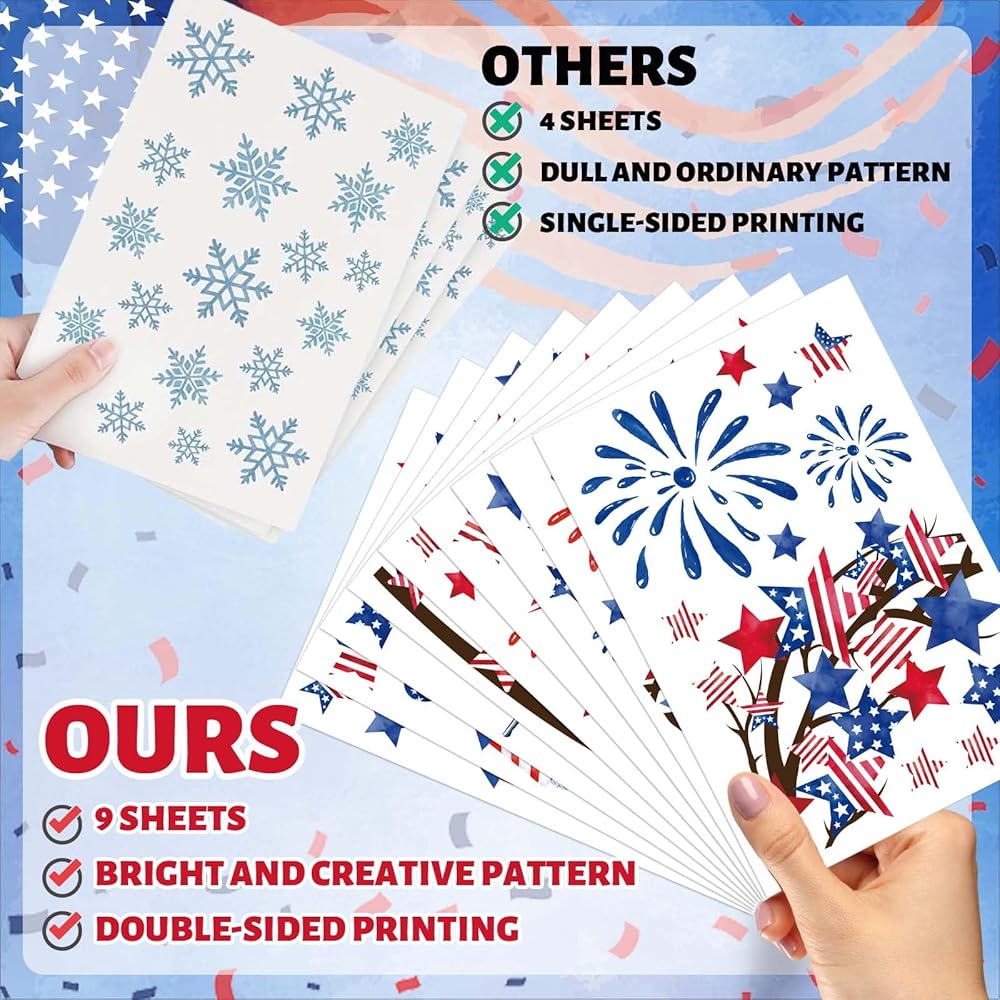 • WIDE RANGE OF USE: Great for preventing birds from flying into your windows, making fillers between other window clings you may have and other daily use, suitable for independence day, memorial day, patriotic theme party and many other special occasions.