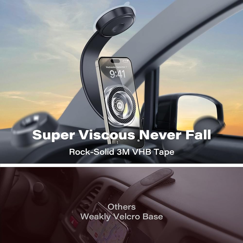 شريط VHB 3M صلب للغاية: قامت APPS2Car بترقية حامل الهاتف المغناطيسي هذا من 3 اتجاهات؛ ①استخدم لاصق 3M VHB بدلاً من قاعدة الفيلكرو، قل وداعًا للامتصاص الضعيف؛ ②حامل هاتف السيارة بقاعدة دوران 360 درجة، كل شيء ينقر فقط؛ ③حامل هاتف مغناطيسي مع امتصاص محكم وجاذبية مغناطيسية ثابتة تصل إلى 25 نيوتن.