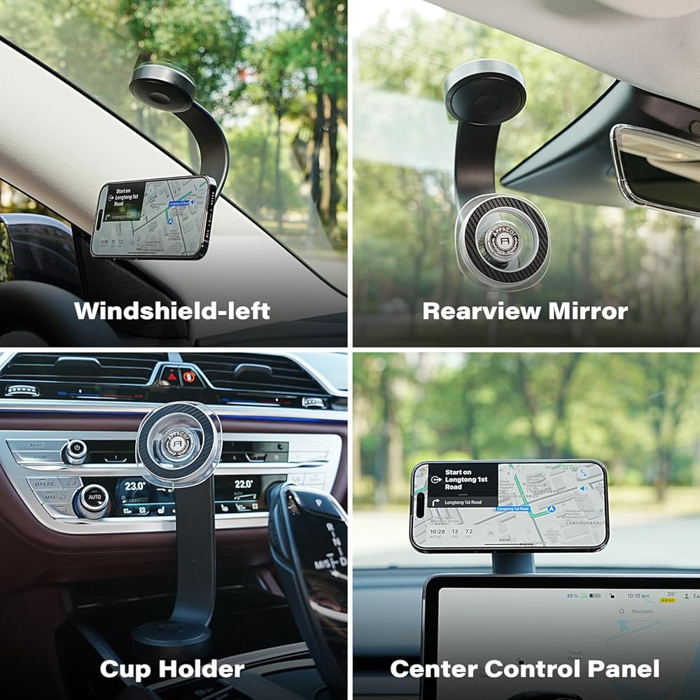 قاعدة قابلة للدوران بالكامل بزاوية 360 درجة: يمكن لحامل السيارة المغناطيسي للهاتف الخلوي أن يحمل هاتفك بأمان في أي زاوية باستخدام الذراع المرن والقاعدة الدوارة، مما يمنحك إمكانيات مشاهدة لا حصر لها دون الحاجة إلى تعديل مستمر.