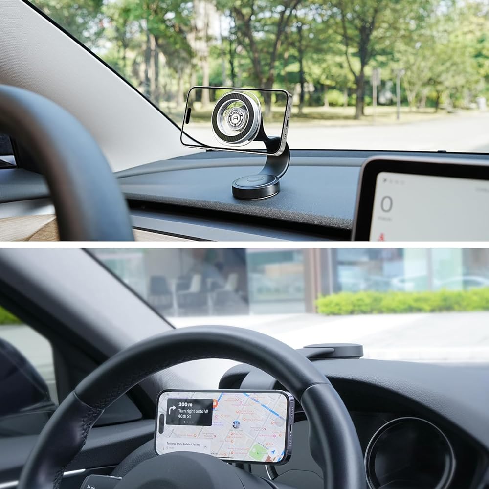 APPS2Car لـ Magsafe حامل هاتف مغناطيسي قابل للدوران على لوحة القيادة للسيارة، مغناطيس قوي للسيارة، حامل هاتف للسيارة متوافق مع iPhone 15 14 13 12، سبيكة ذاكرة قابلة للانحناء للزجاج الأمامي