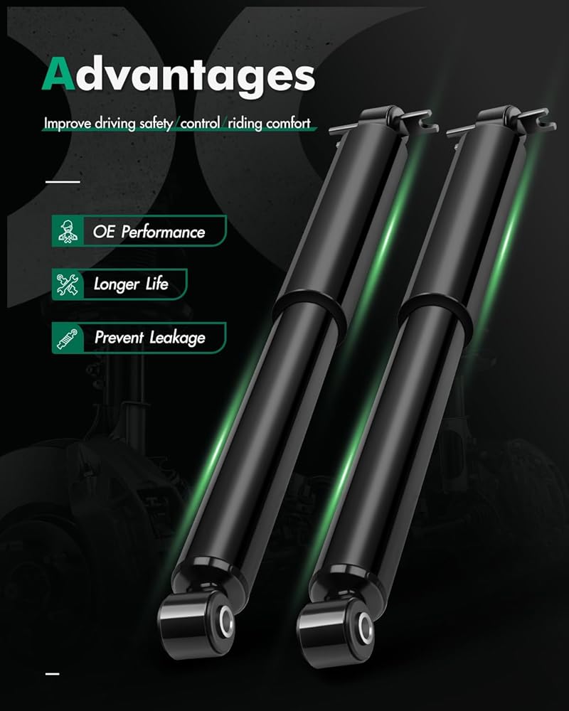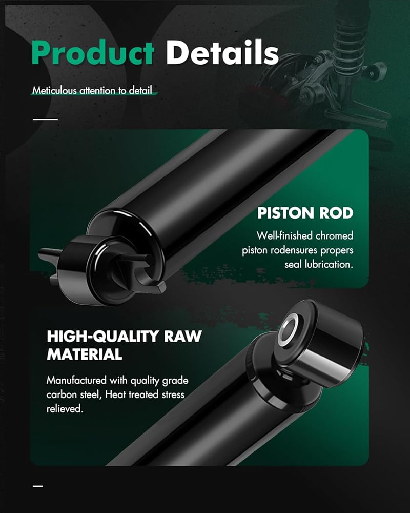 👍 👍 𝗣𝗘𝗥𝗙𝗢𝗥𝗠𝗔𝗡𝗖𝗘: ① Reduce vehicle bounce,roll and sway,brake dive and acceleration squat,offering premium handing and control performance ; ②Effectively prevent oil leakage and reduce abnormal noise,make the driving experience more comfortable; ③Design dissipates heat rapidly,increasing durability and product longer-life