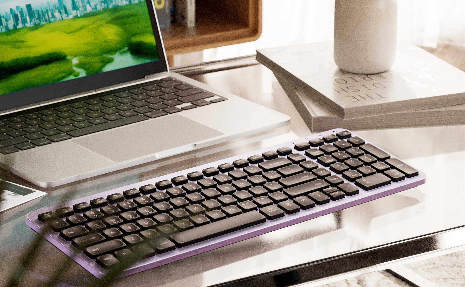[ Ergonomic Keyboard ] This wireless keyboard not only adds a touch of sleekness to your workspace but also provides great typing angles that allow you to work comfortably for extended periods. Whether you're writing emails, coding, or simply browsing the web, the ergonomic design promotes better reduces strain, enabling you to type effortlessly for hours on end.