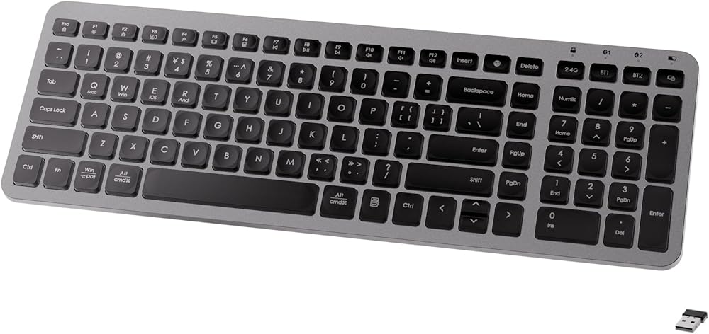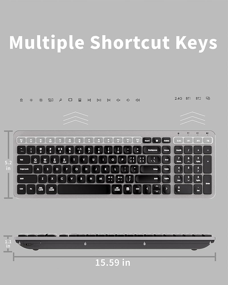 [ Compact Wireless Keyboard ] Use 2.4GHz & Bluetooth Wireless Keyboard to enjoy comfortable and efficient typing experience, featuring 106 vintage black square keys and 15 shortcut keys for a smooth and responsive press and click.