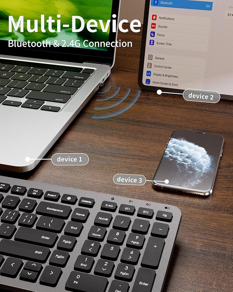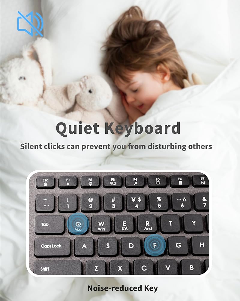 [ Quiet Bluetooth Keyboard ] The keyboard's noise-reducing keys ensure that you can work without missing a sound or disturbing your surroundings, provide a soft and comfortable typing experience, with minimal noise.