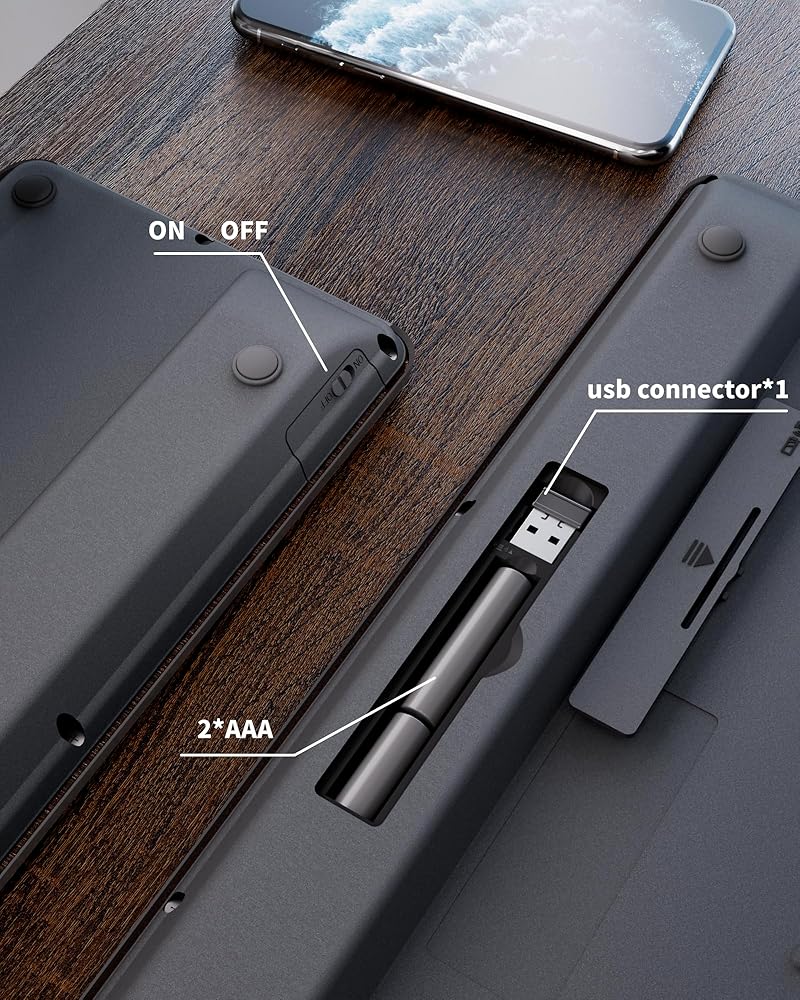 [ Auto Sleep Keyboard ] The small keyboards has an auto sleeping mode, once you stop using the wireless keyboard set for 10 seconds, they will work at a lower current for energy saving. It can go on for months without the hassle of replacing batteries.