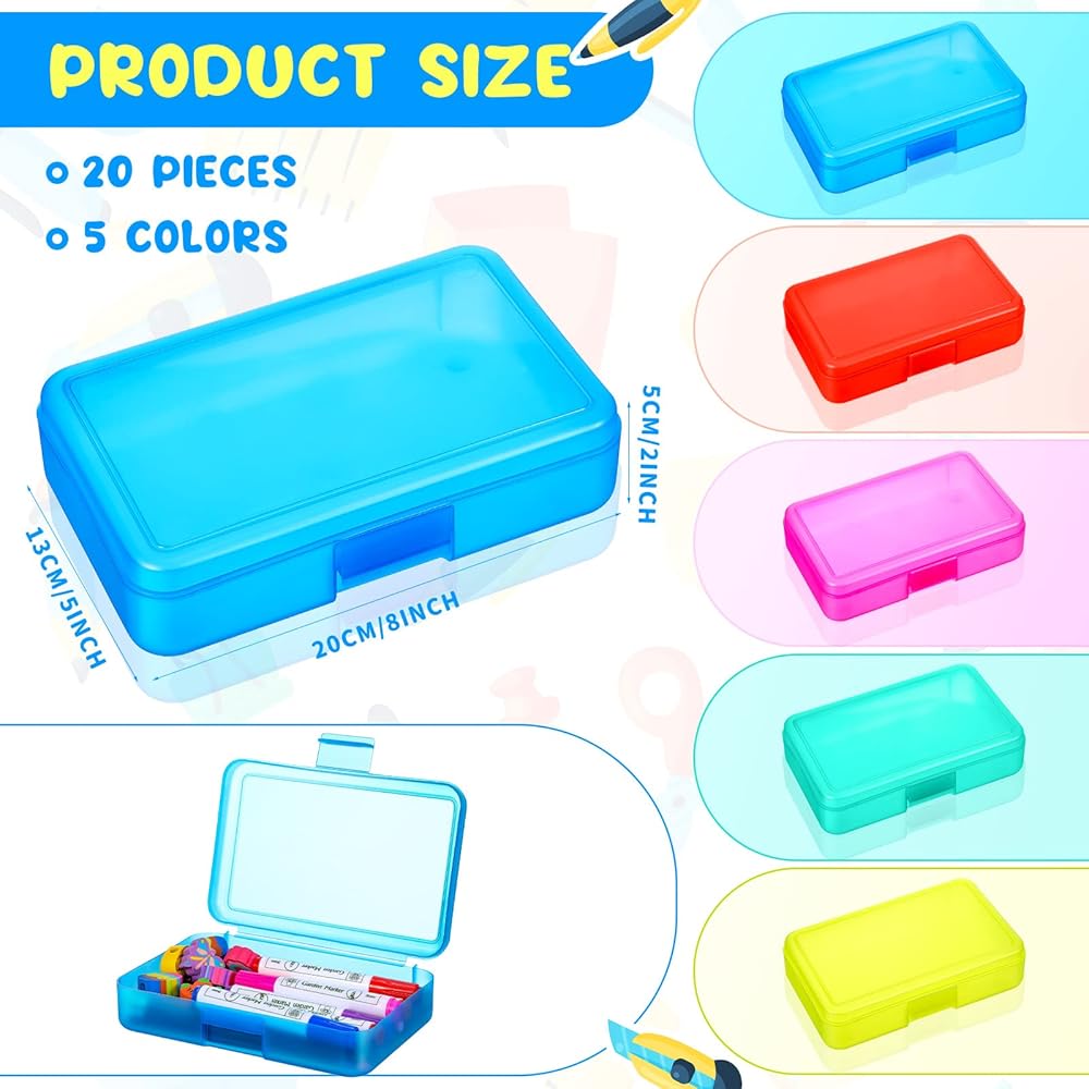 You will get 20 pieces of transparent pencil box cases, adequate quantity and rich colors can meet your variety of daily use and replacement needs, you can also share them with you friends or others.