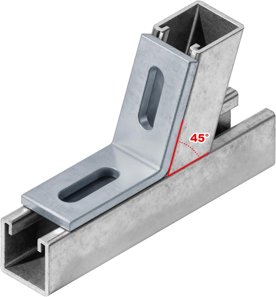 6 قطع من دعامات زاوية 45 درجة من Heeng لقناة تبختر 1-5/8 بوصة، تجهيزات مشقوقة شديدة التحمل قابلة للتعديل للتأطير والتركيب الشمسي والمشروعات اليدوية، بسمك 7/32 بوصة