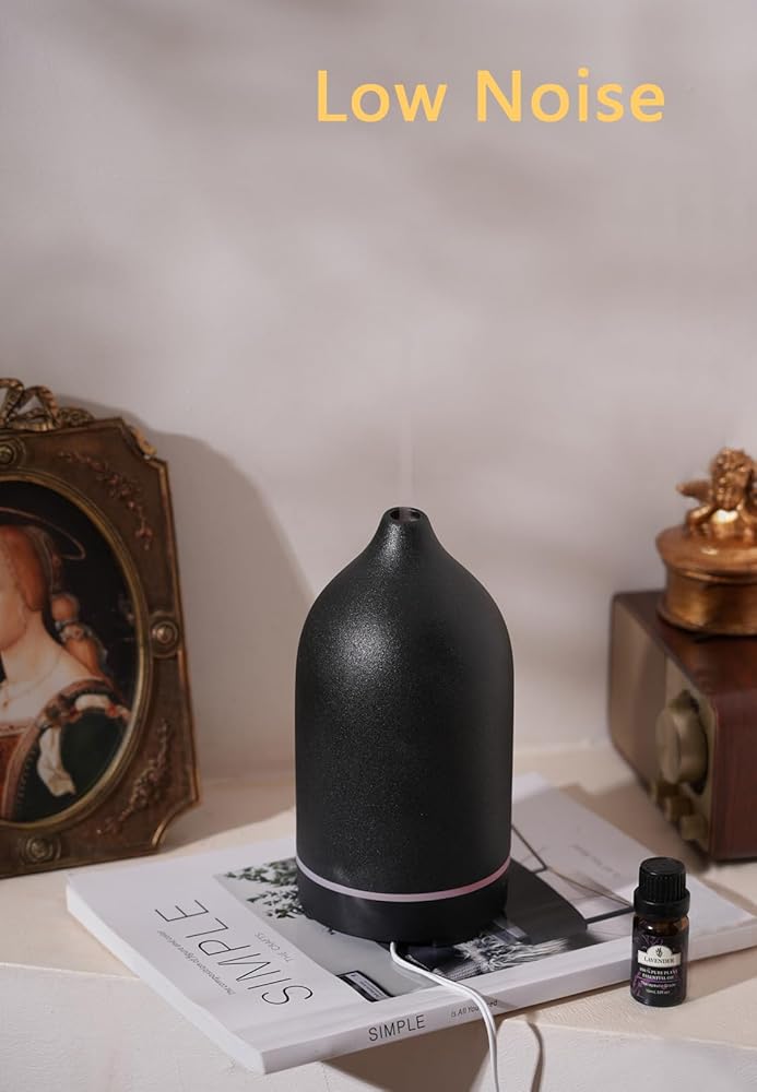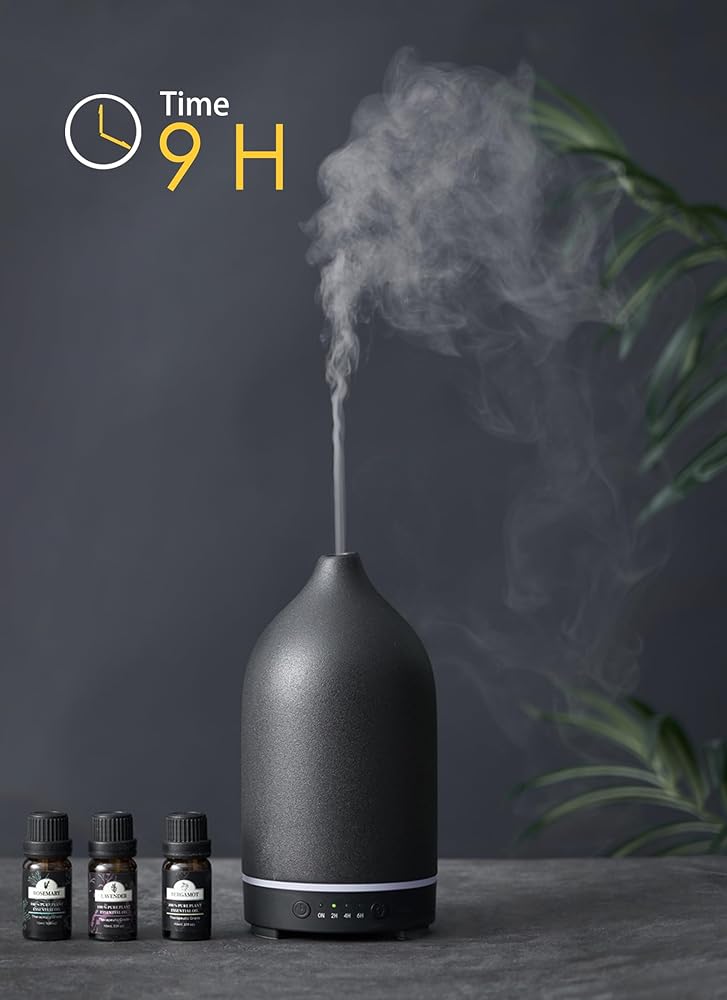 【 4 مؤقتات】يحتوي موزع الروائح الحجرية بالموجات فوق الصوتية على مؤقت 2H-4H-6H. قم بترقية خزان المياه سعة 200 مل بسعة كبيرة ووقت عمل يصل إلى 9 ساعات.
